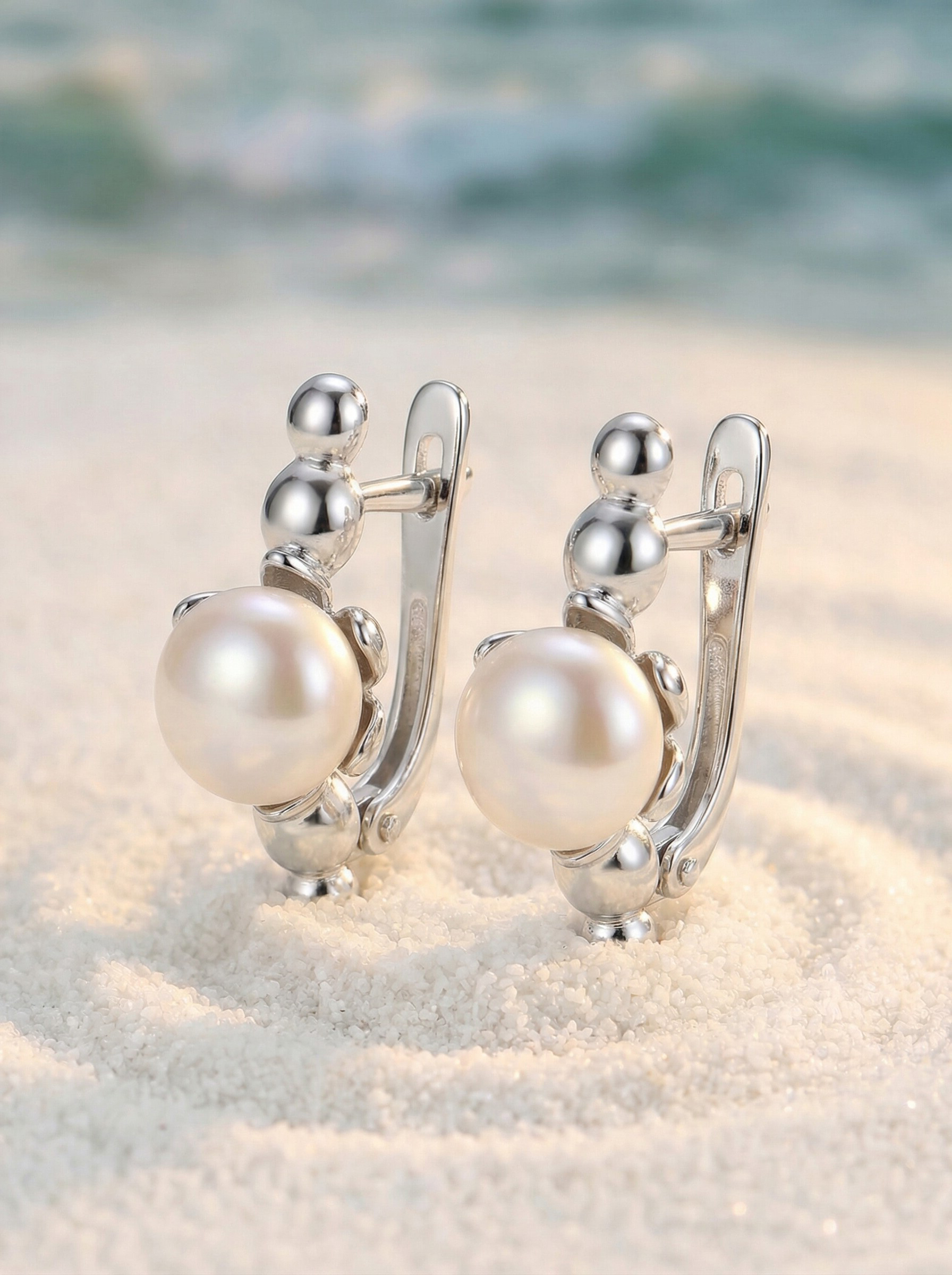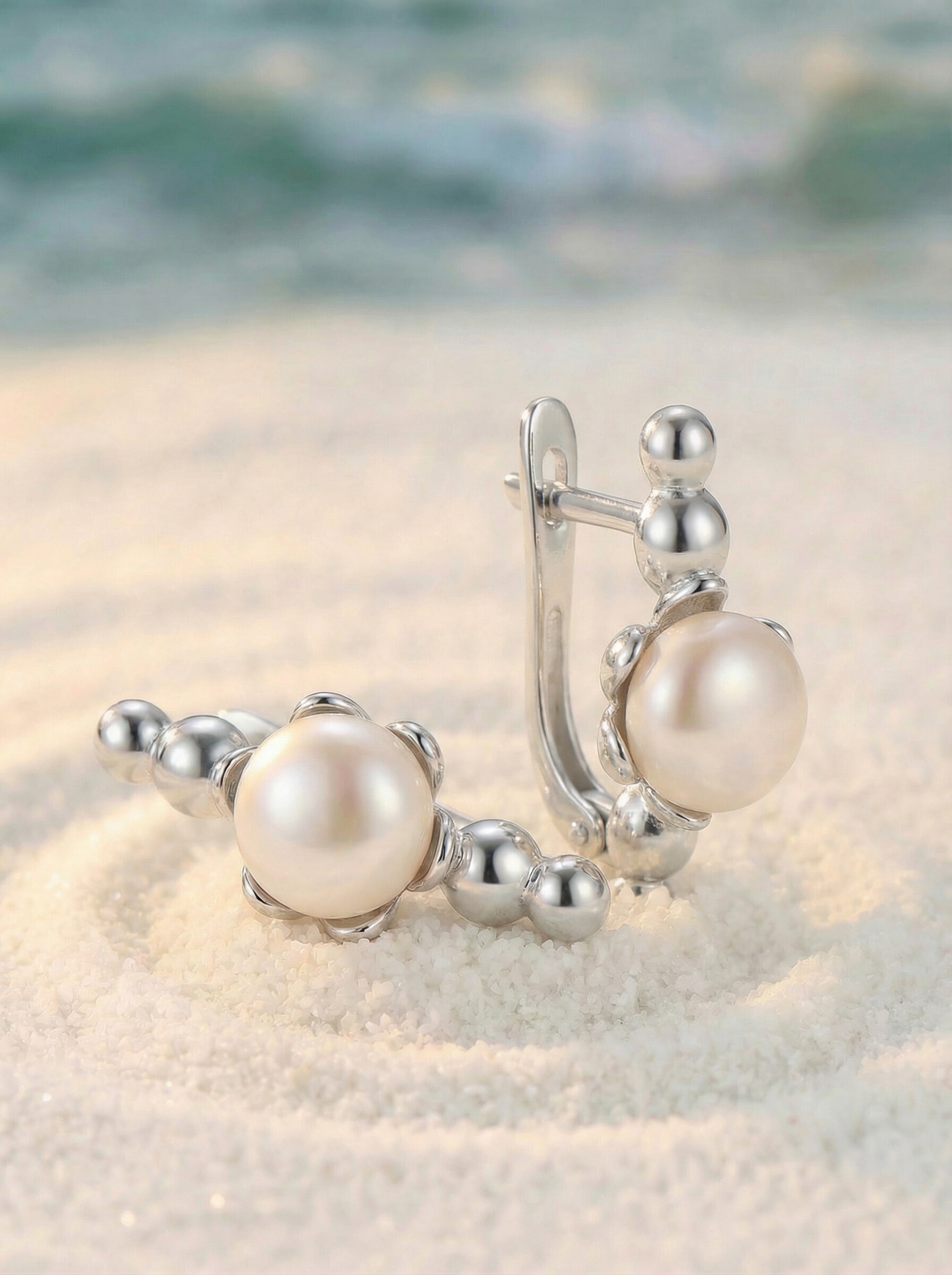 Серьги из серебра с жемчуом родированные