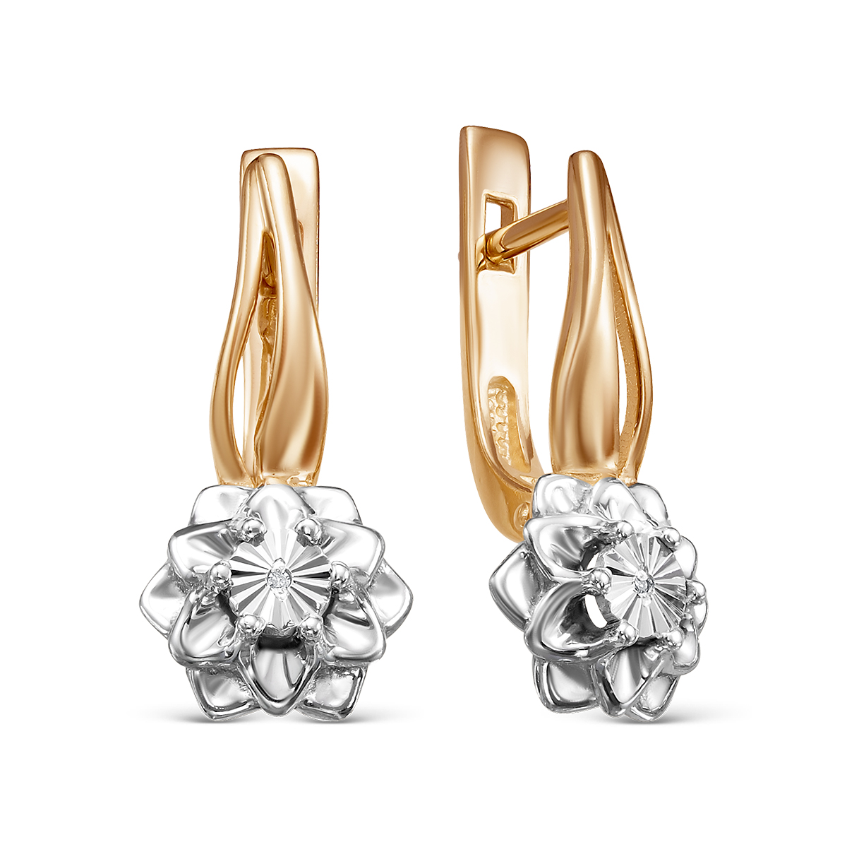 Серьги из золочёного серебра с бриллиантами и родированием