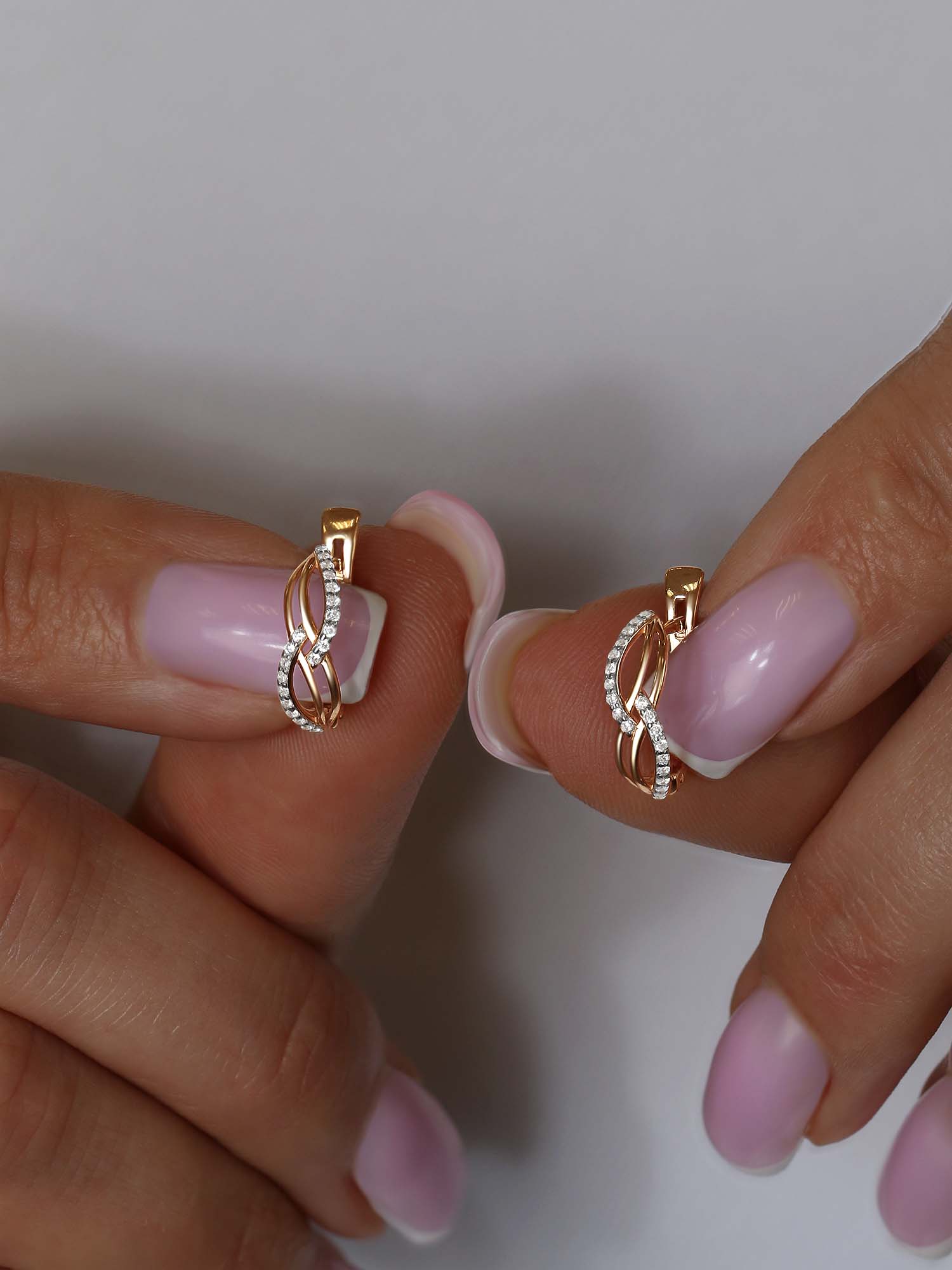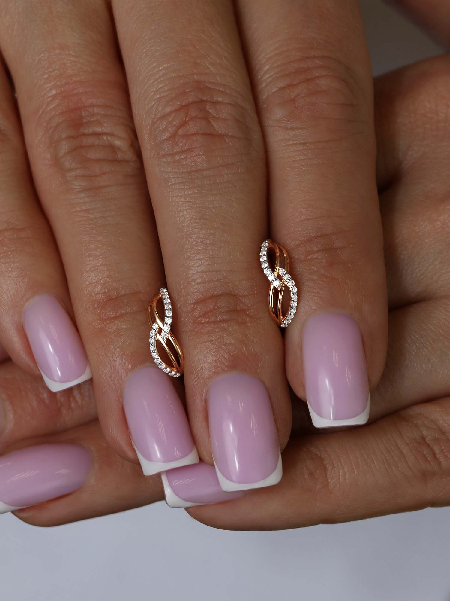 Серьги из золочёного серебра с фианитами и родированием
