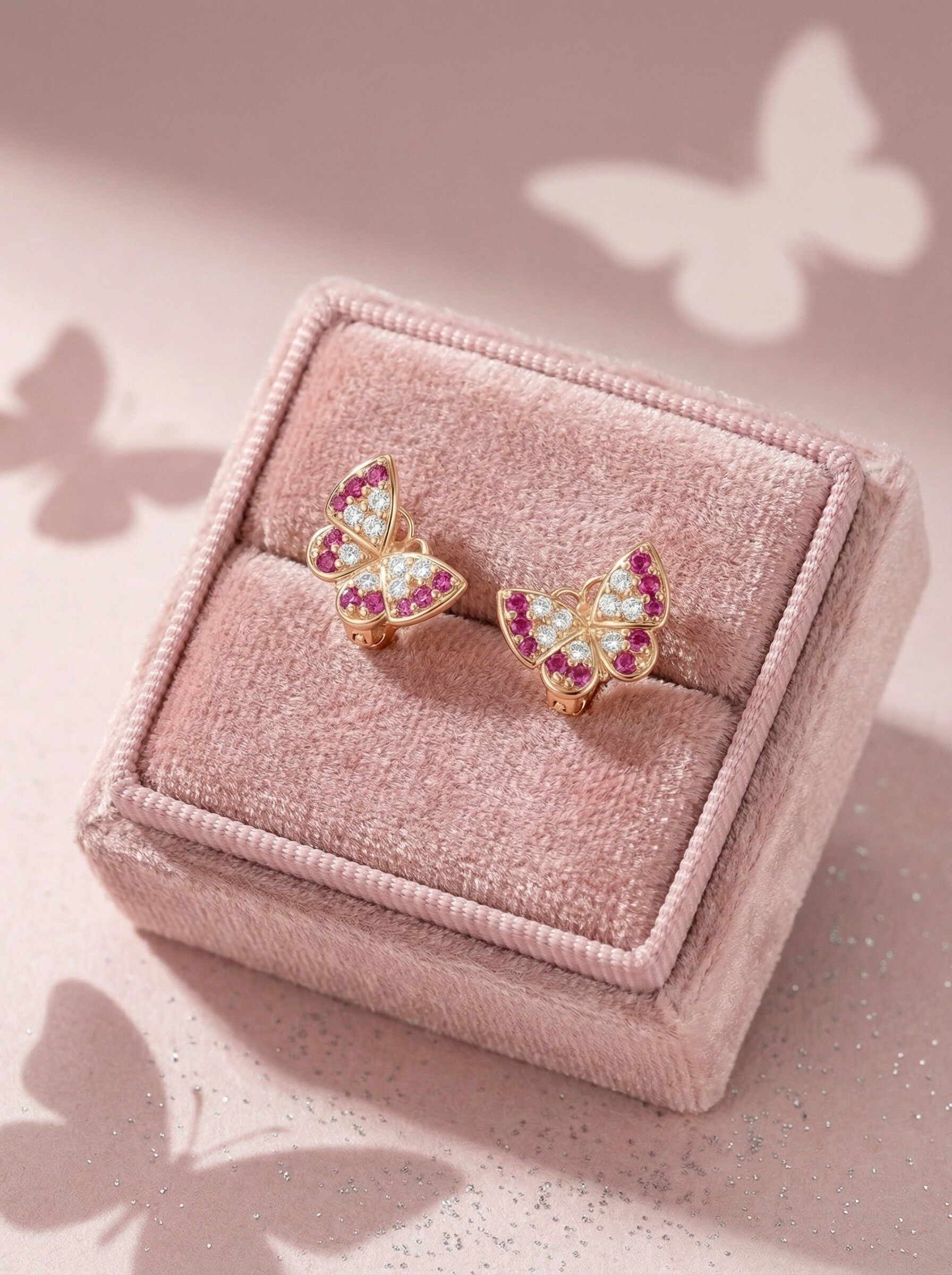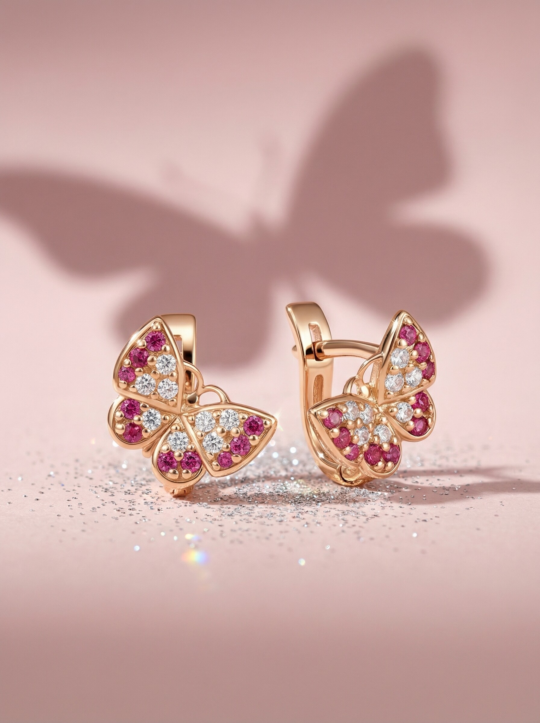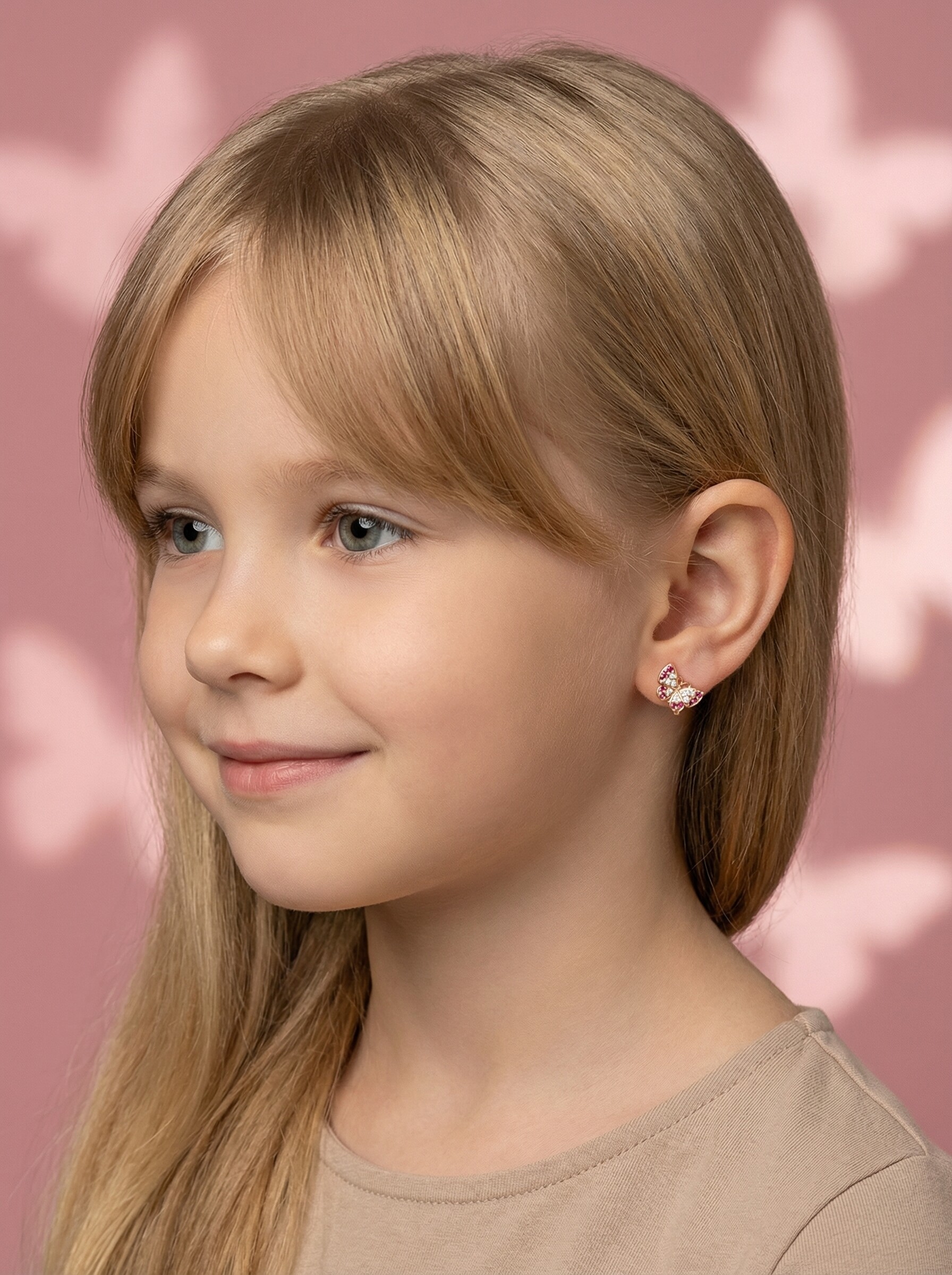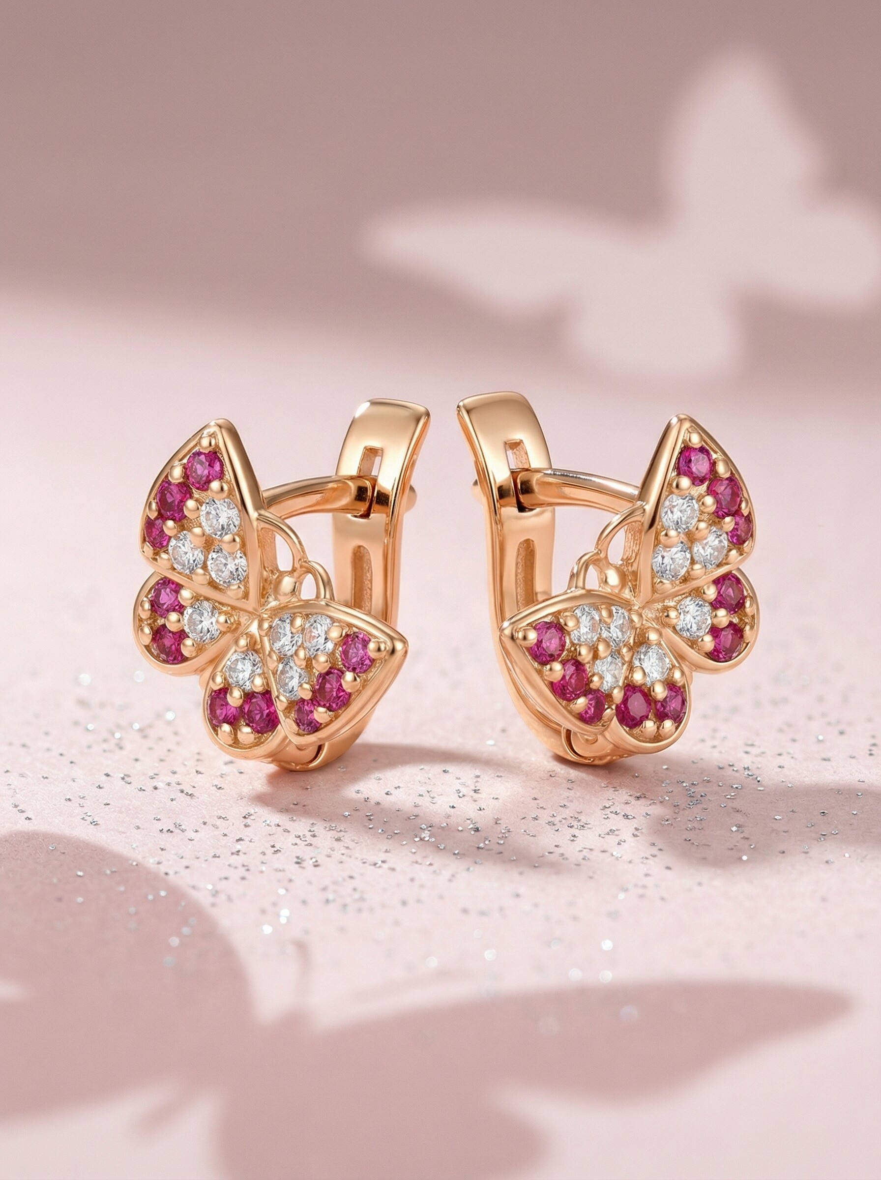 Серьги-пусеты из золочёного серебра с фианитами - Бабочки