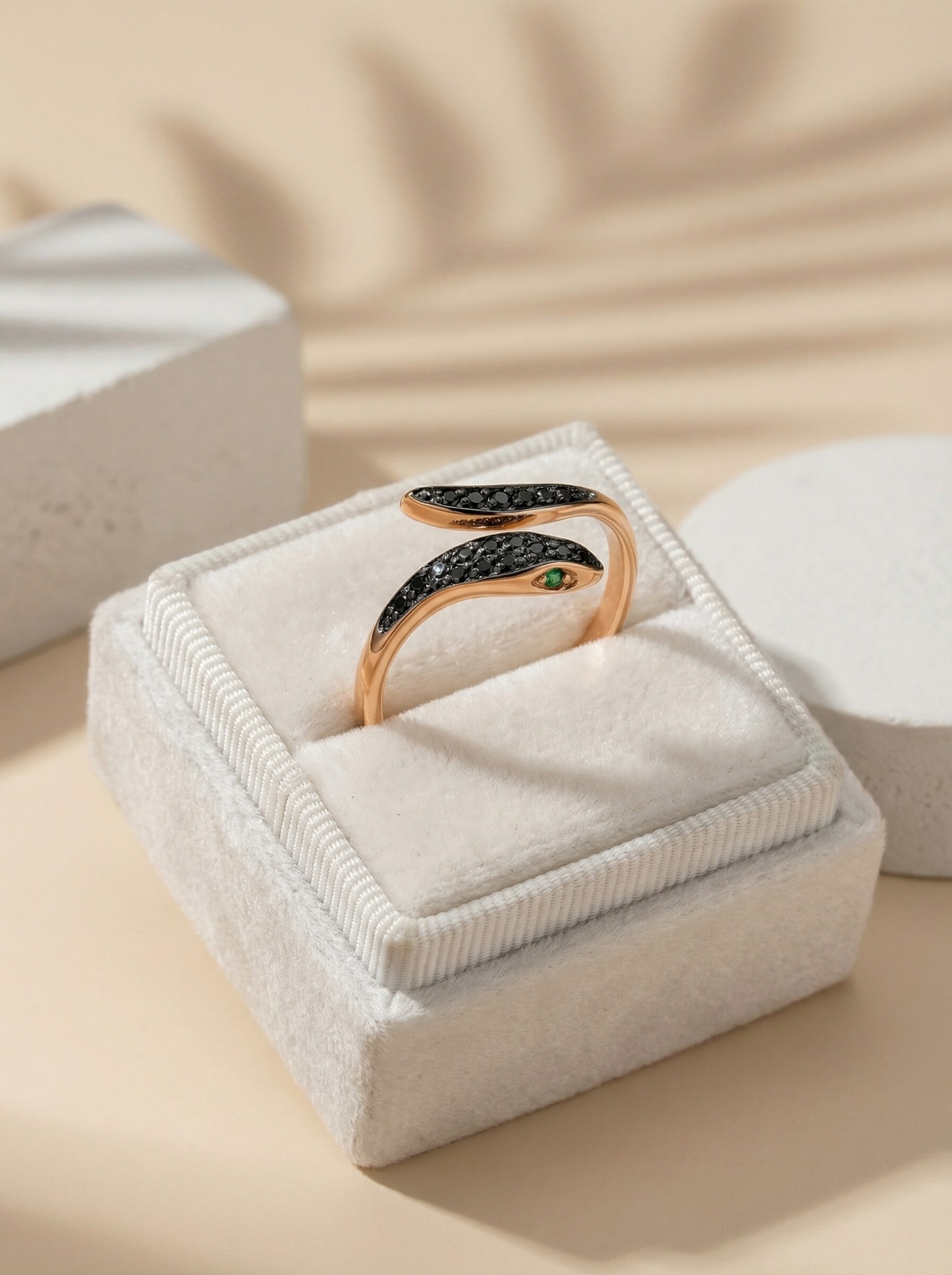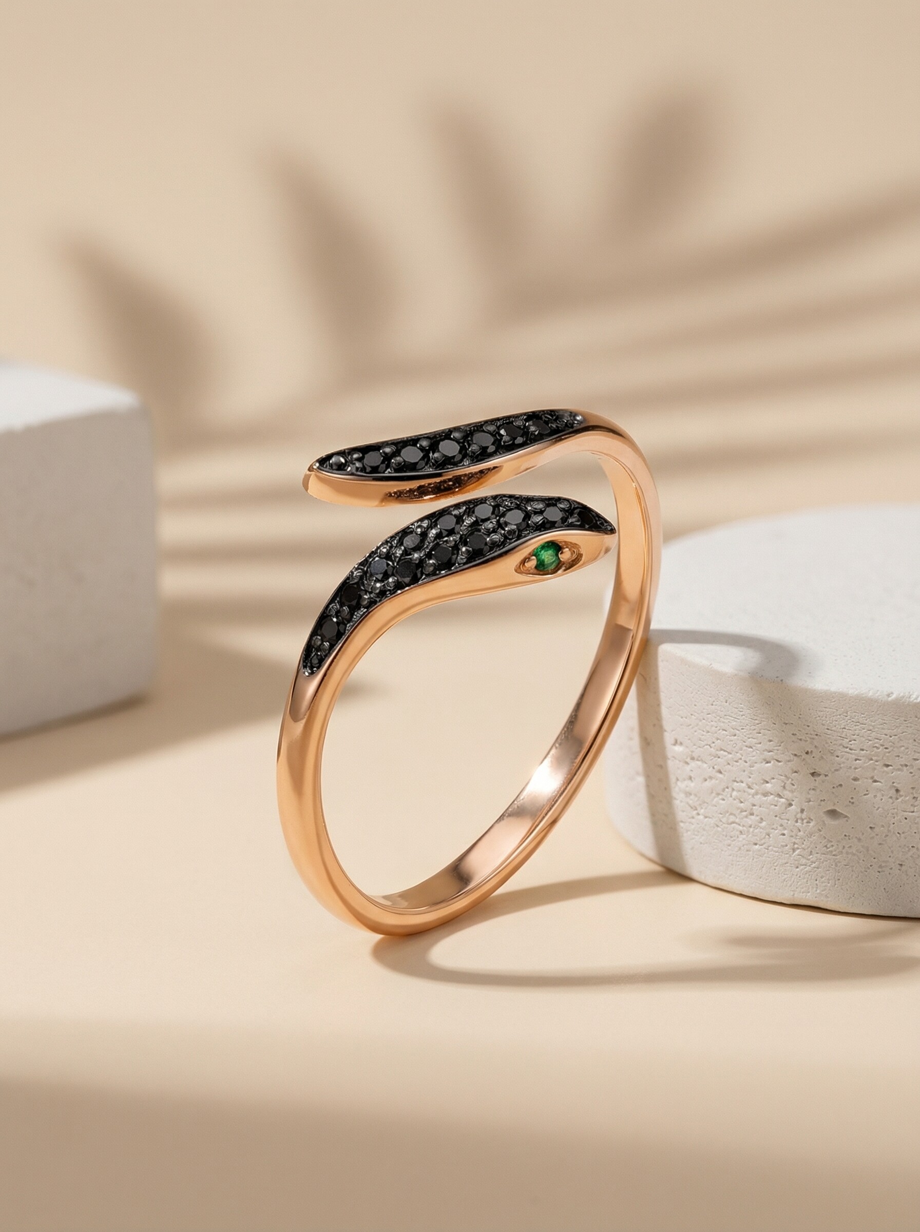 Кольцо-Змея из золочёного серебра с фианитами и родированием