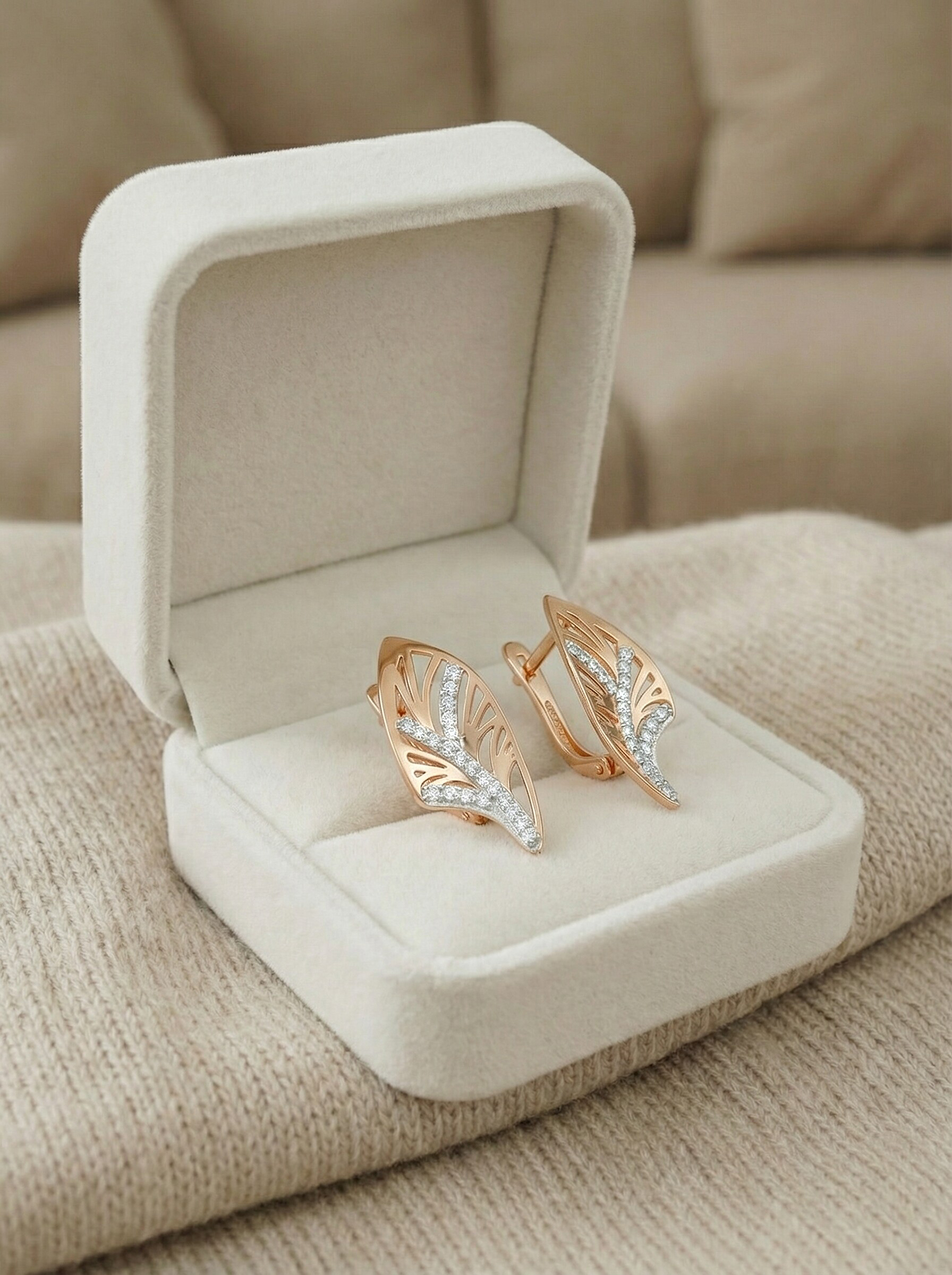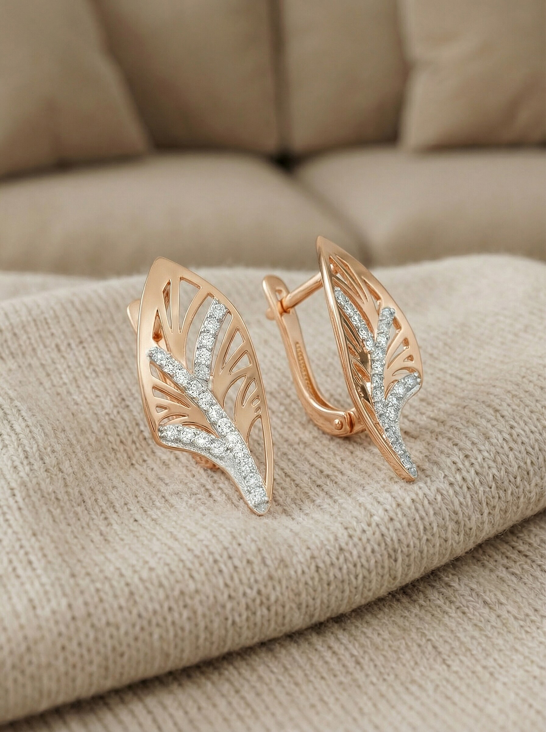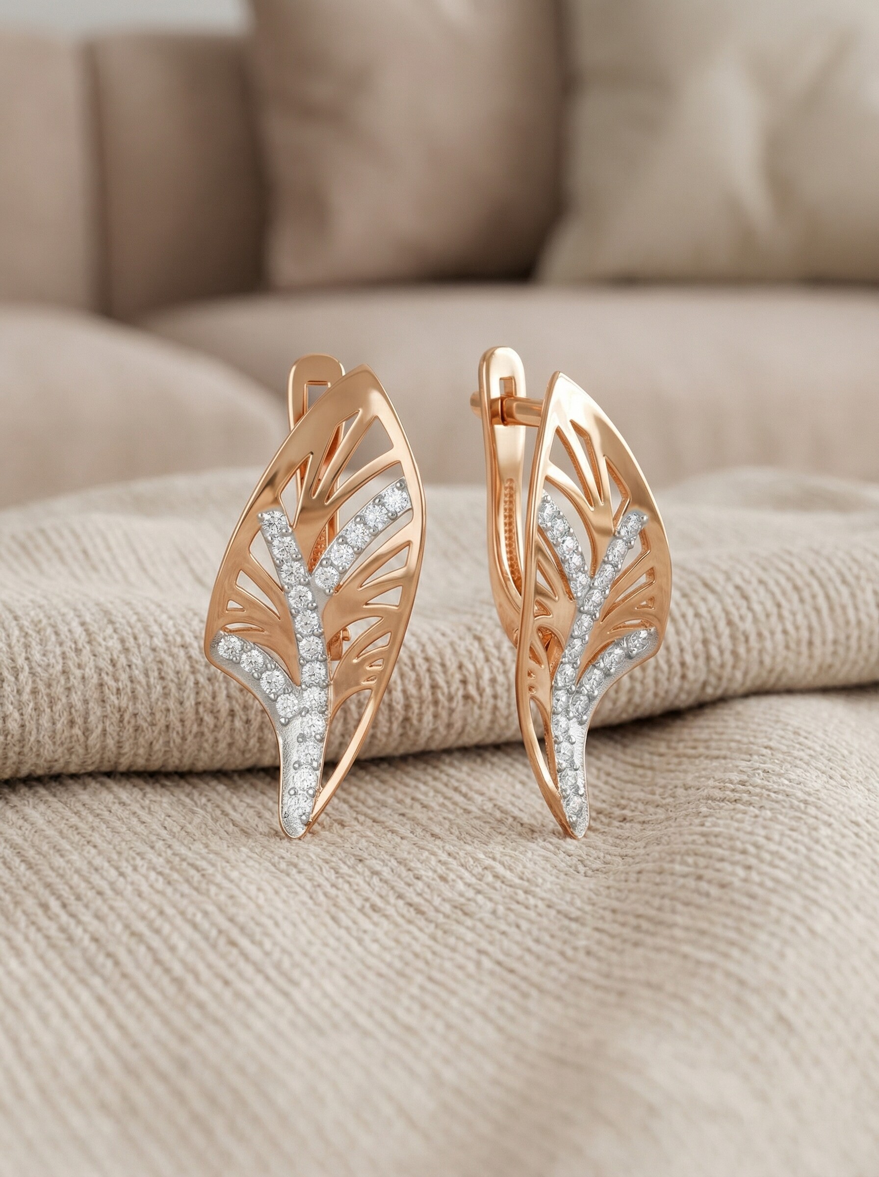Серьги из золочёного серебра с фианитами и родированием