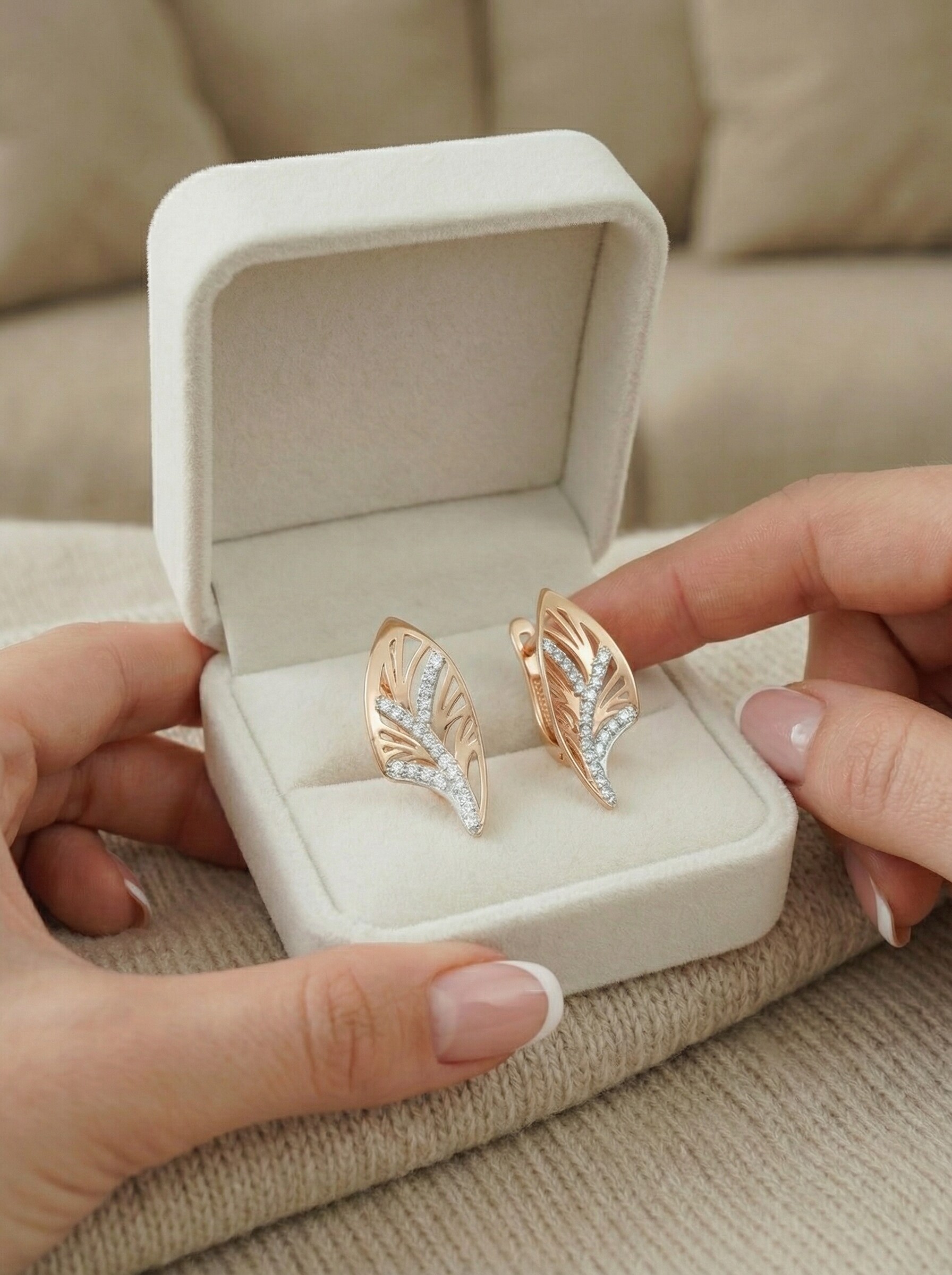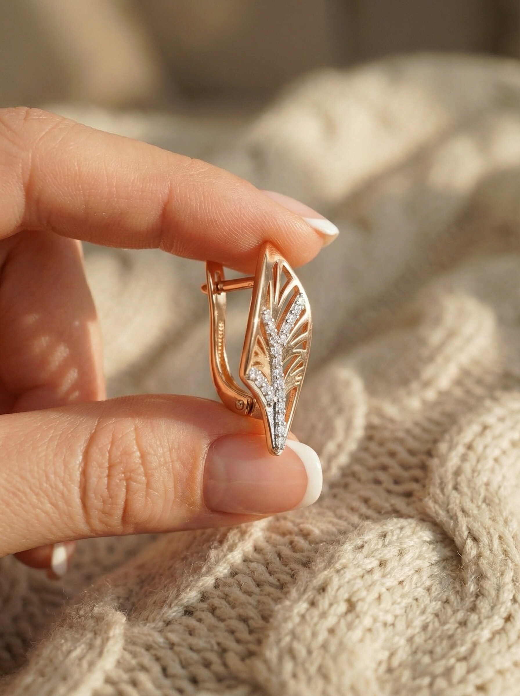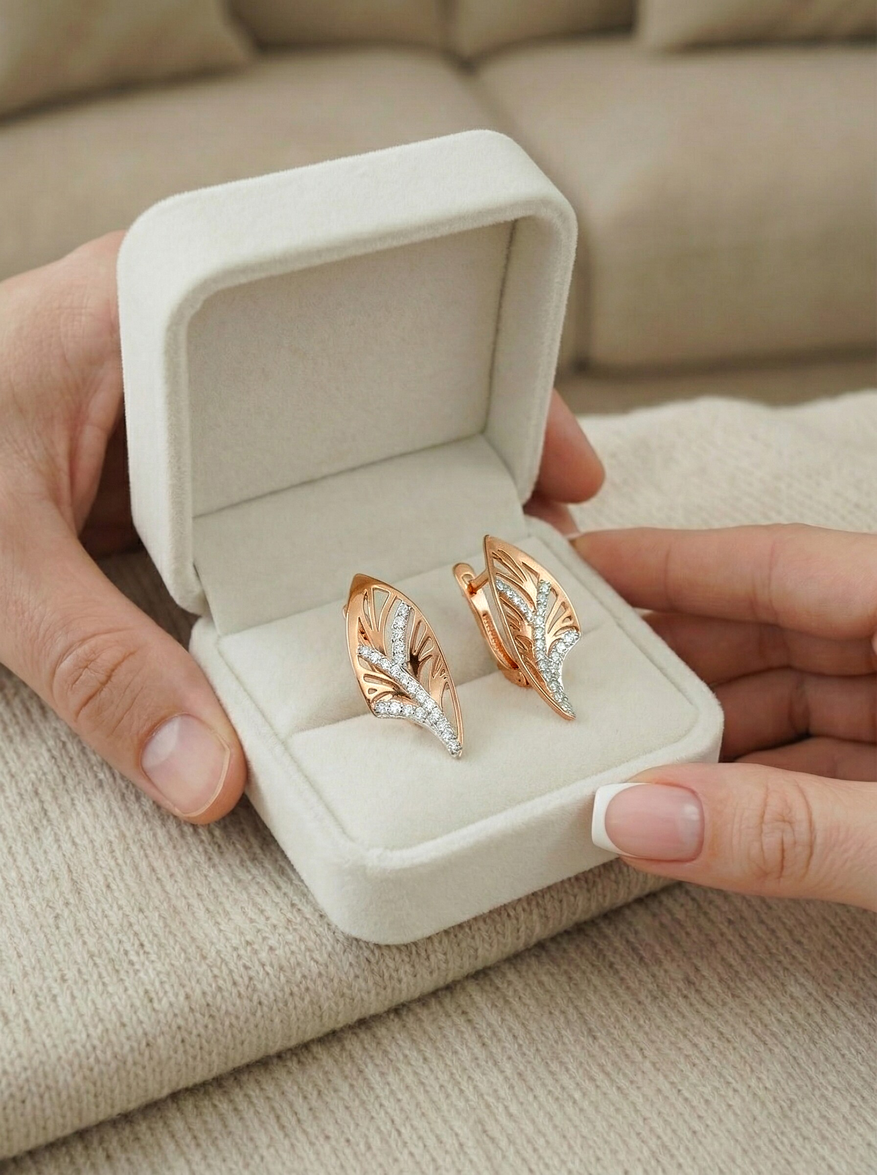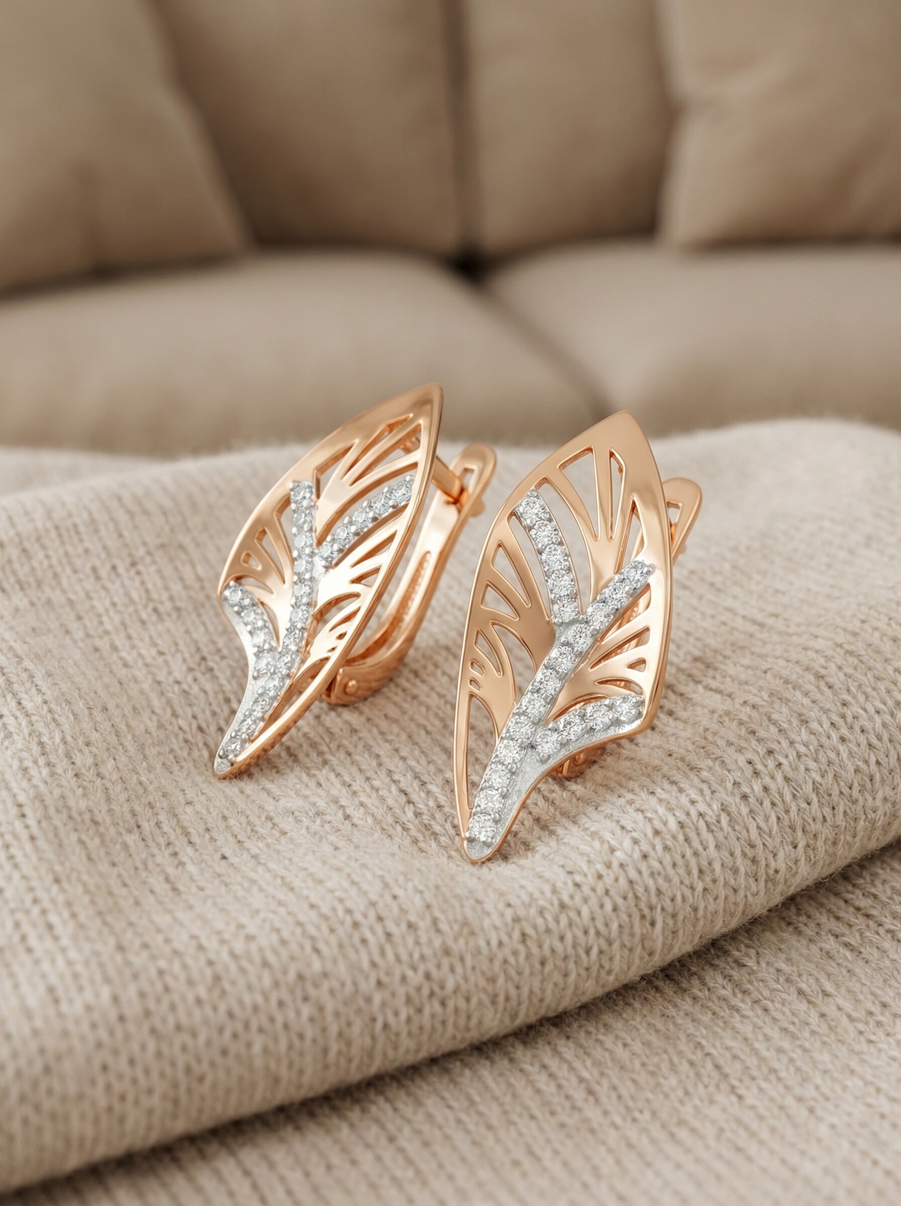 Серьги из золочёного серебра с фианитами и родированием