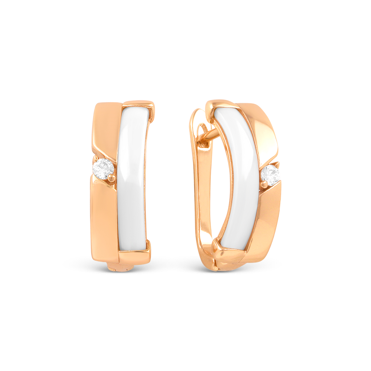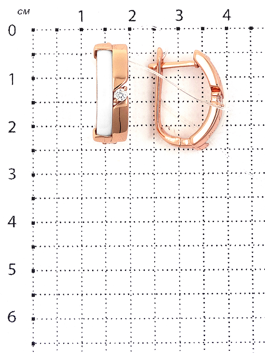 Серьги из золочёного серебра с керамикой и куб.цирконием TC-E01036-W-G-X-X-W