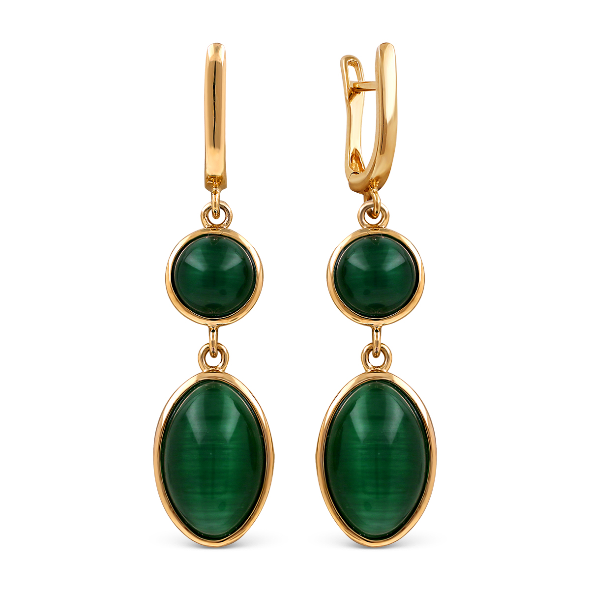 Серьги из золочёного серебра с кварцем кошачий глаз