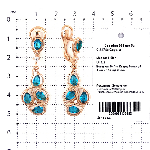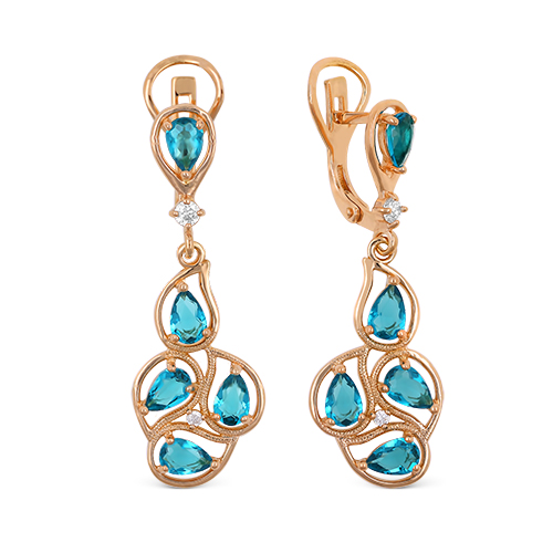 Серьги из золочёного серебра с кварцем топаз и фианитами