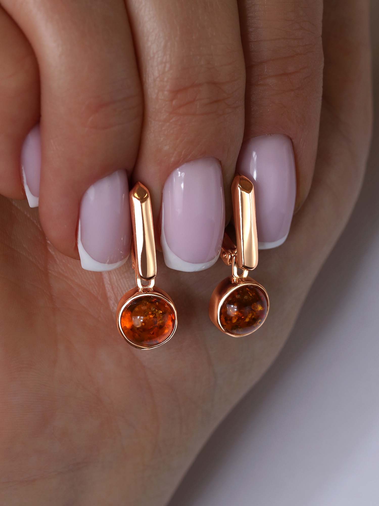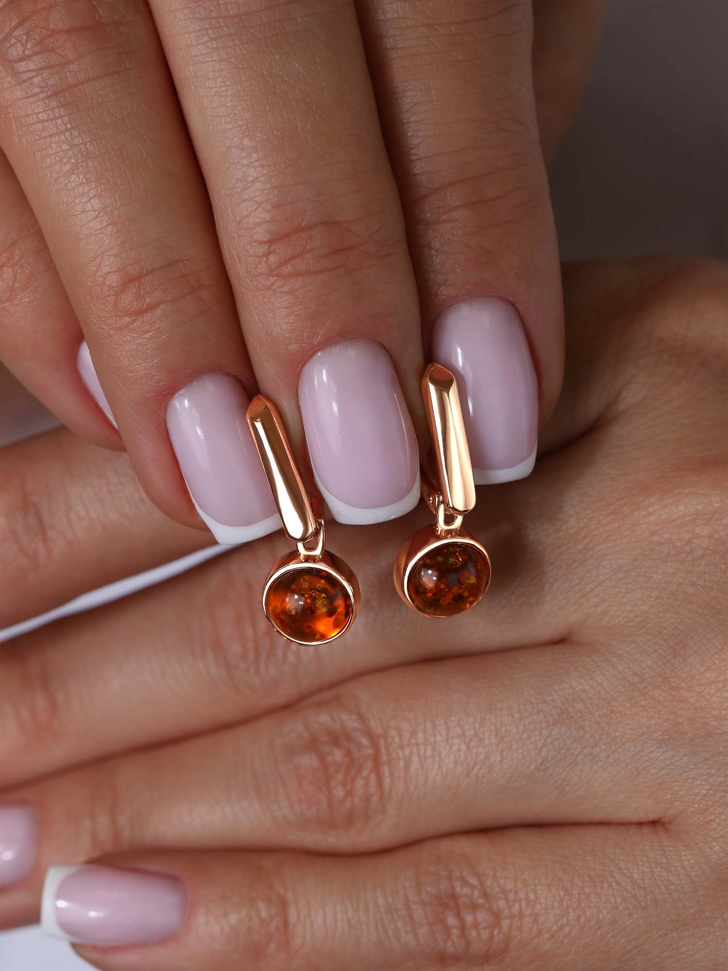 Серьги из золочёного серебра с натуральным янтарём