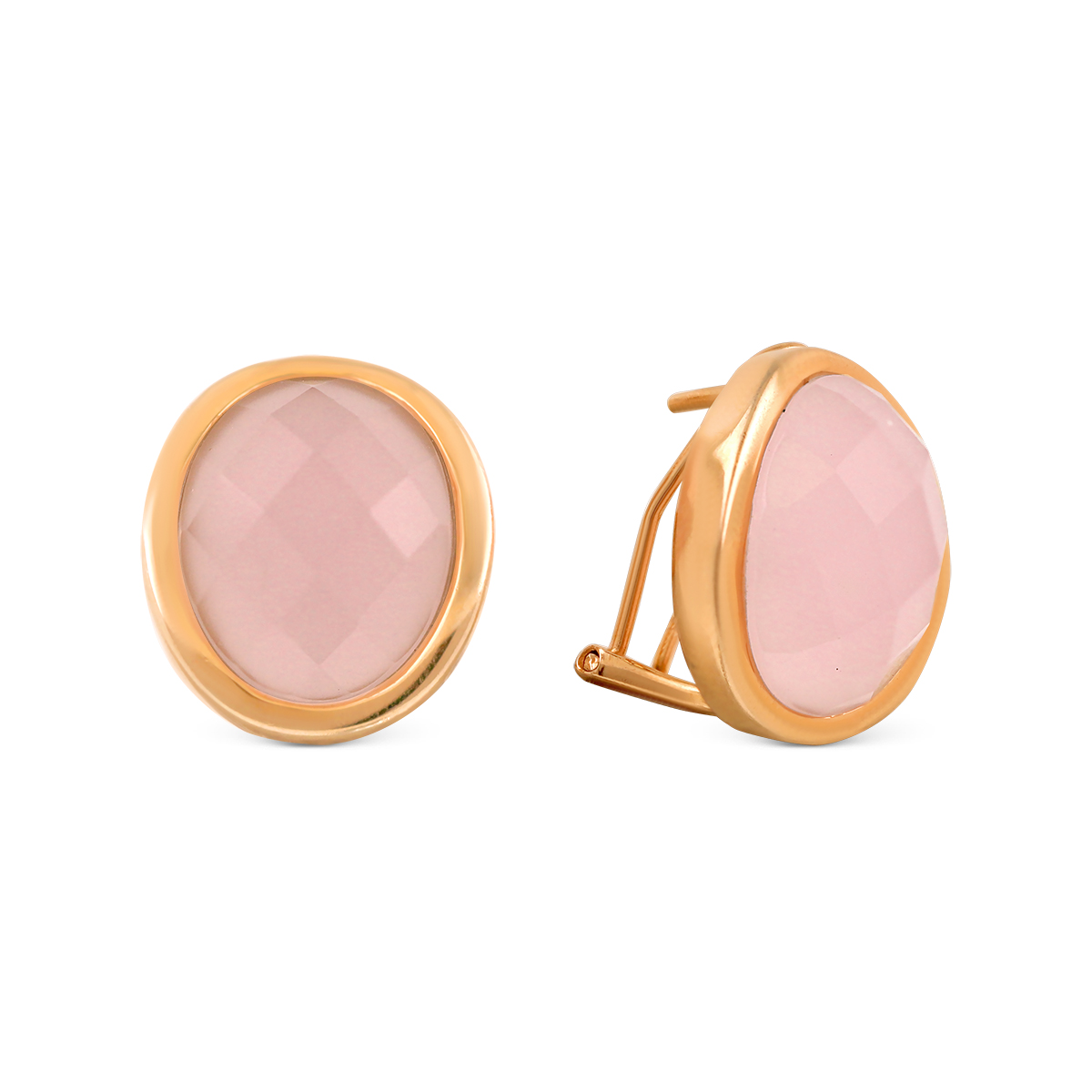 Серьги из золочёного серебра с пл.кварцем цв.розовый