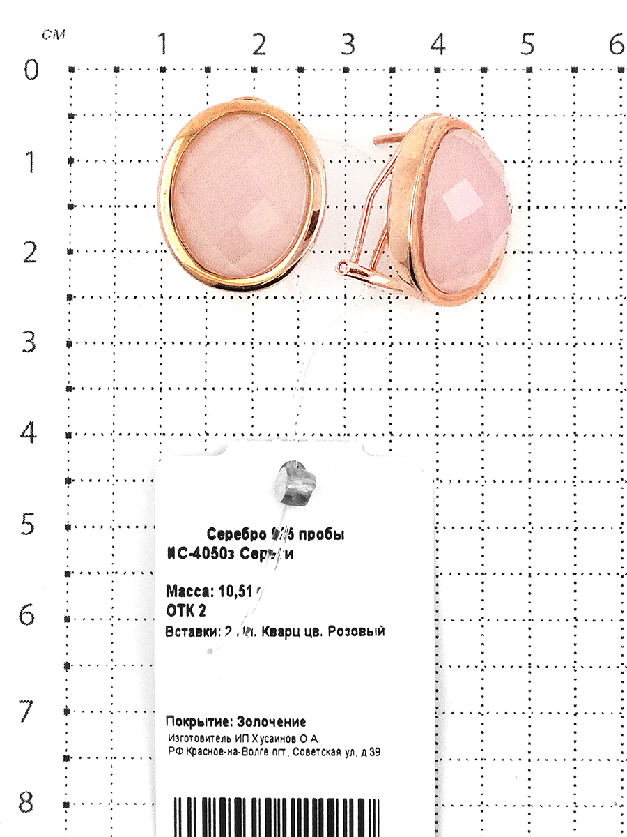 Серьги из золочёного серебра с пл.кварцем цв.розовый ИС-4050з