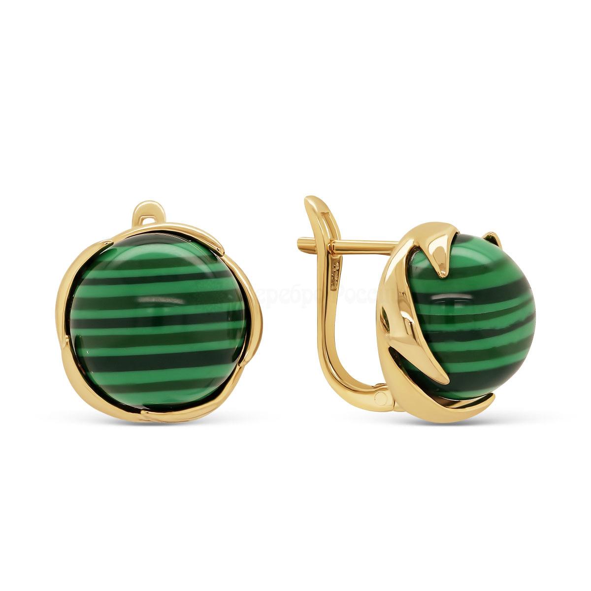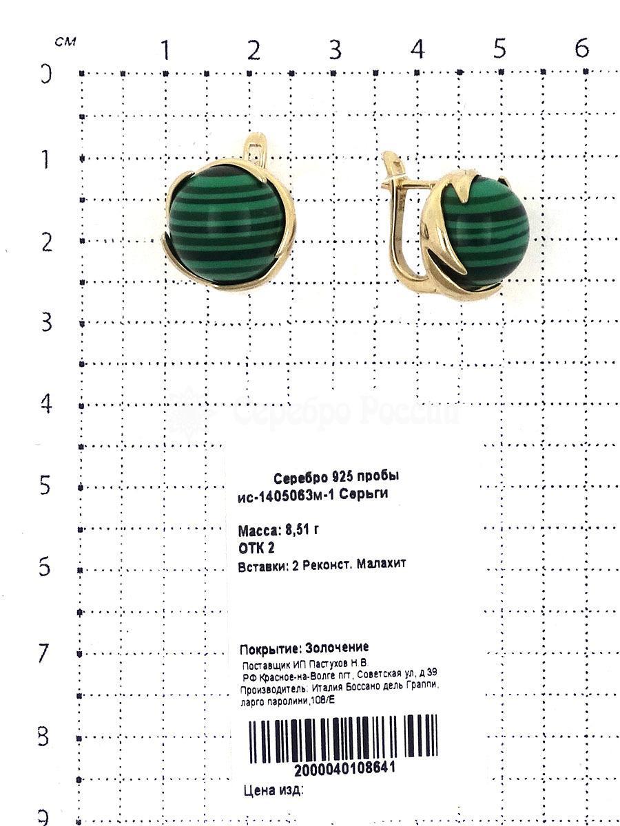Серьги из золочёного серебра с реконст. малахитом ис-1405063м-1