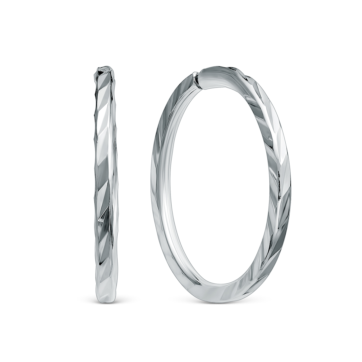 Серьги-конго из серебра с алмазной огранкой родированные - диаметр 1,7 см