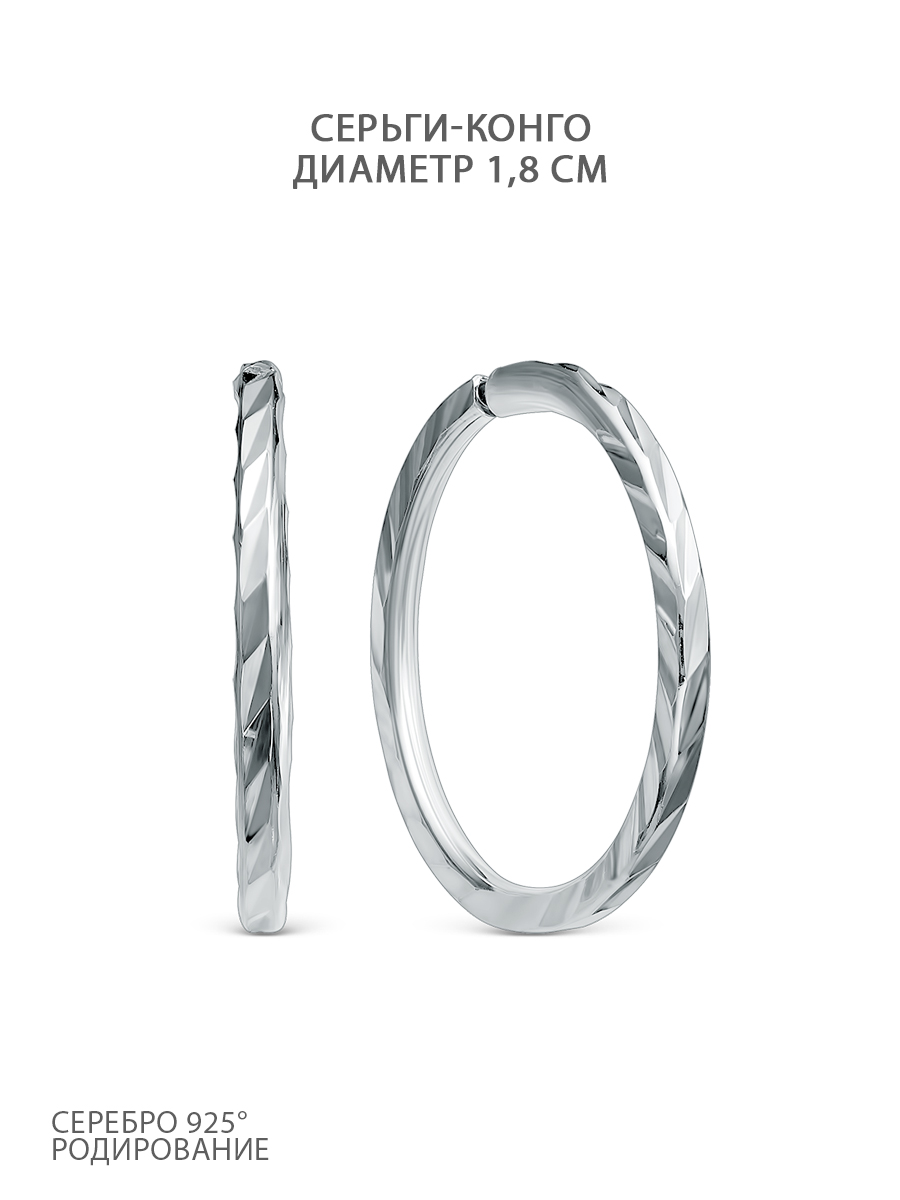 Серьги-конго из серебра с алмазной огранкой родированные - диаметр 1,7 см 2-187ра