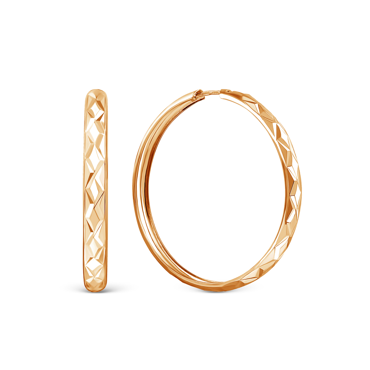 Серьги-конго из золочёного серебра с алмазной огранкой - диаметр 2,5 см
