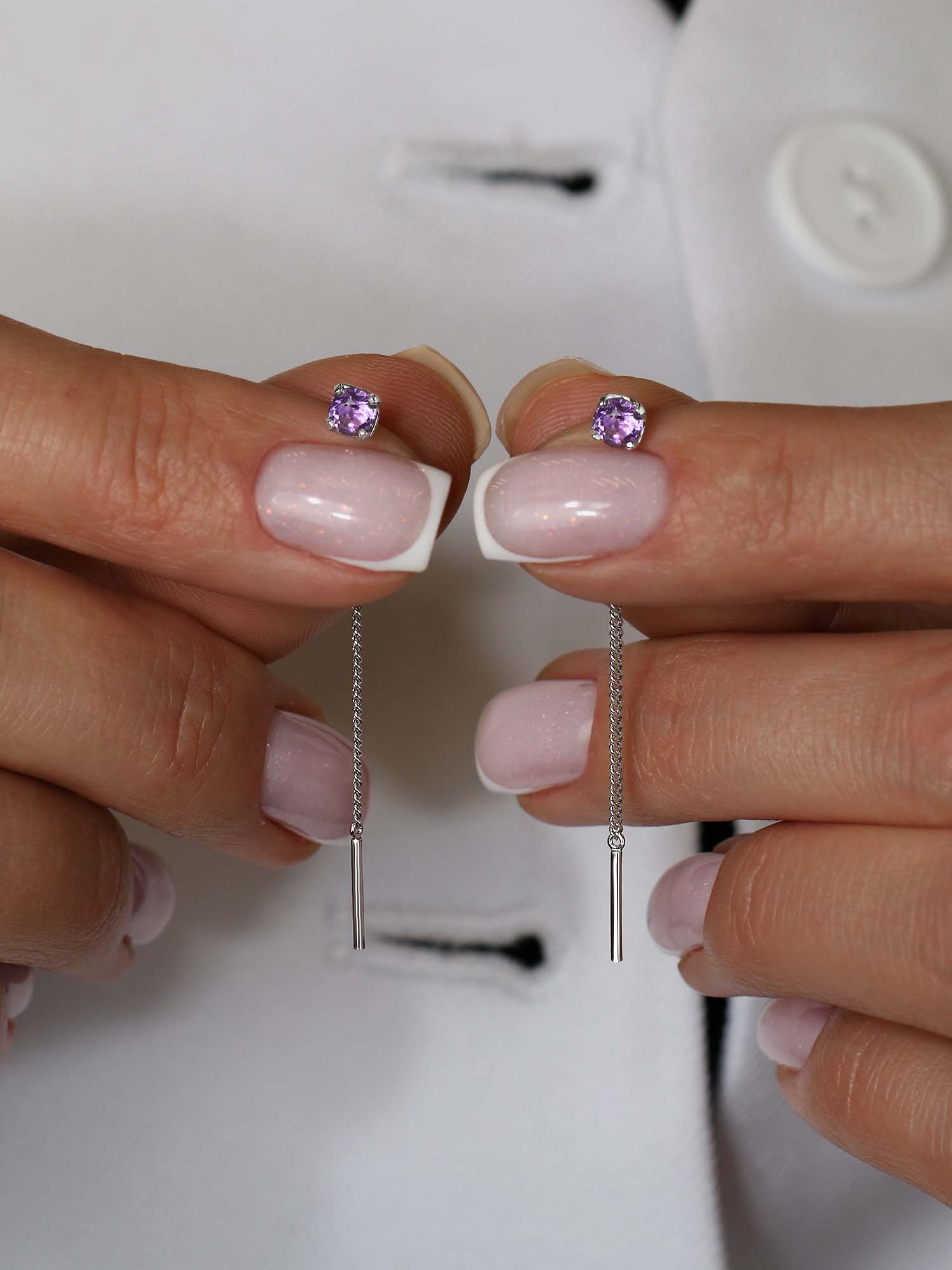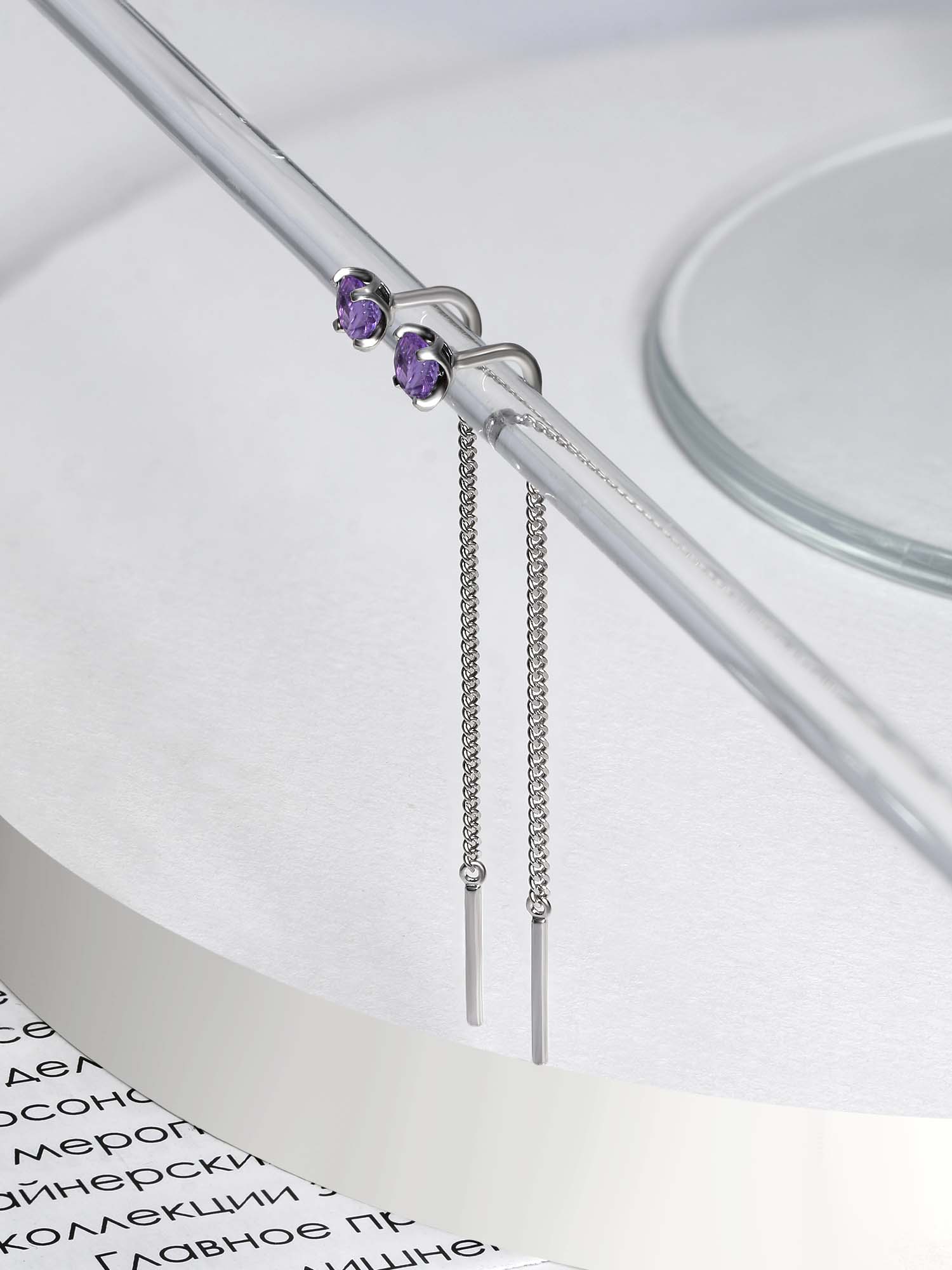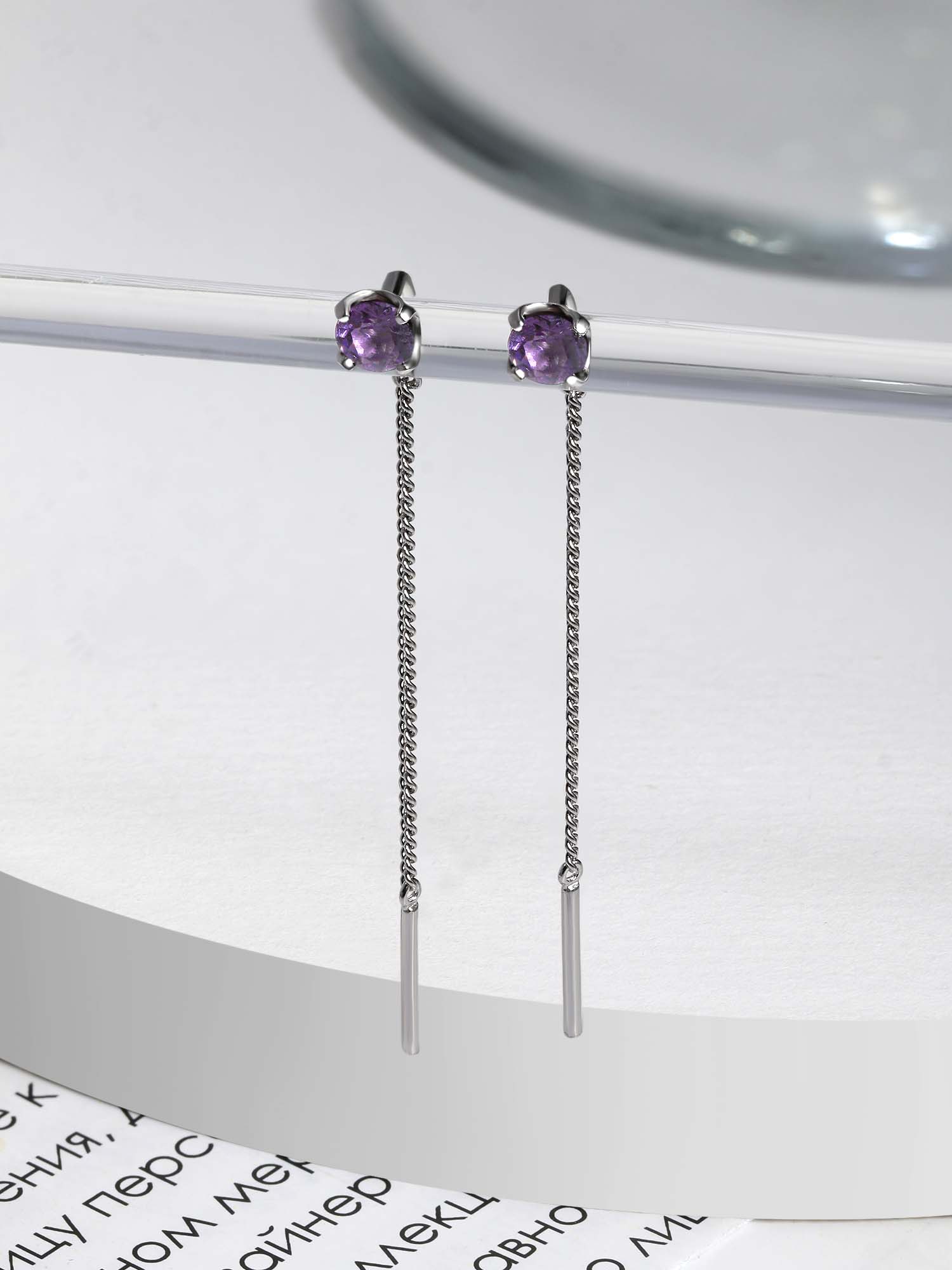Серьги-продёвки из серебра с аметистами родированные z2-11031р401