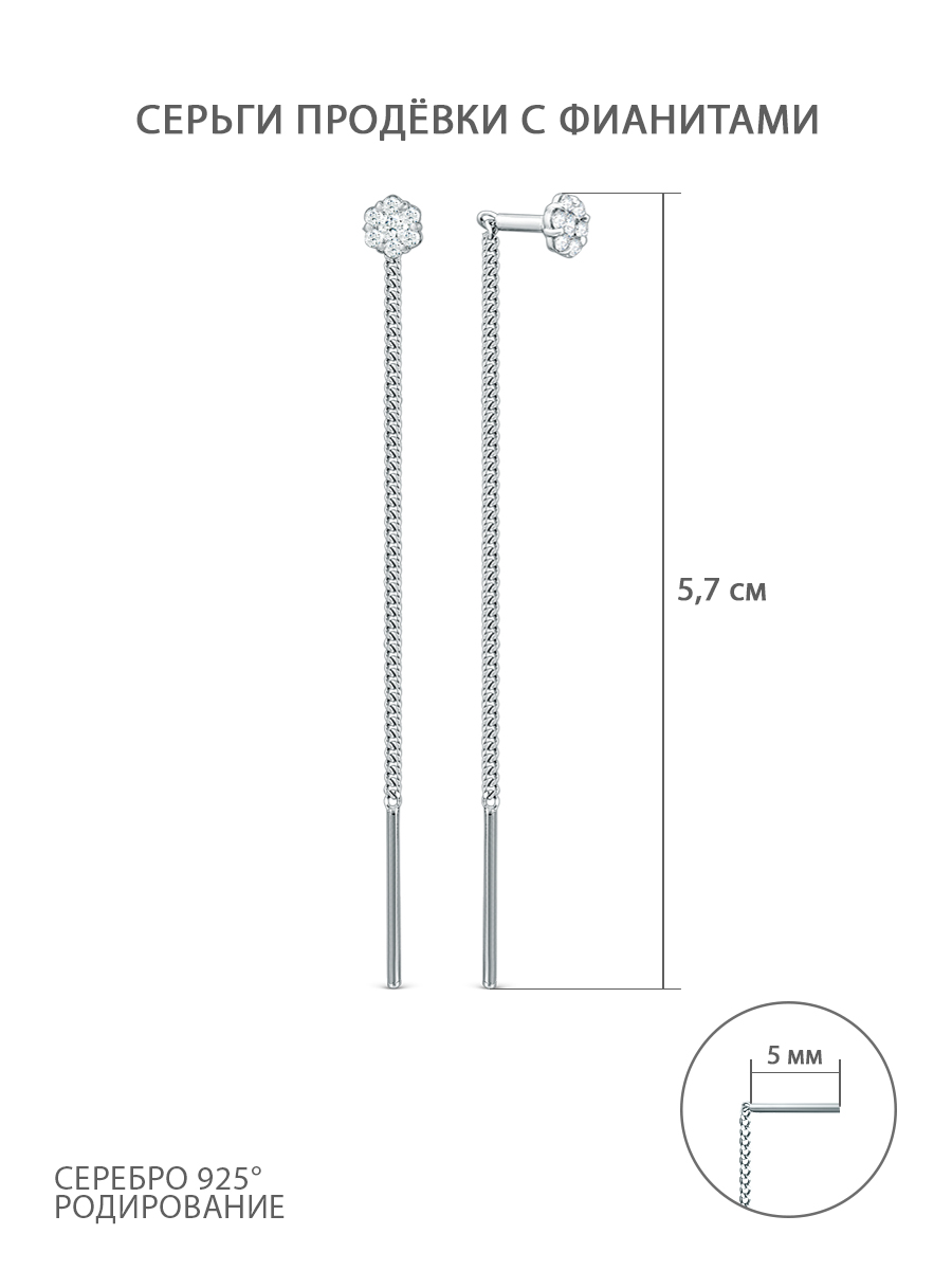Серьги-продёвки из серебра с фианитами родированные 925 пробы С-2944-Р