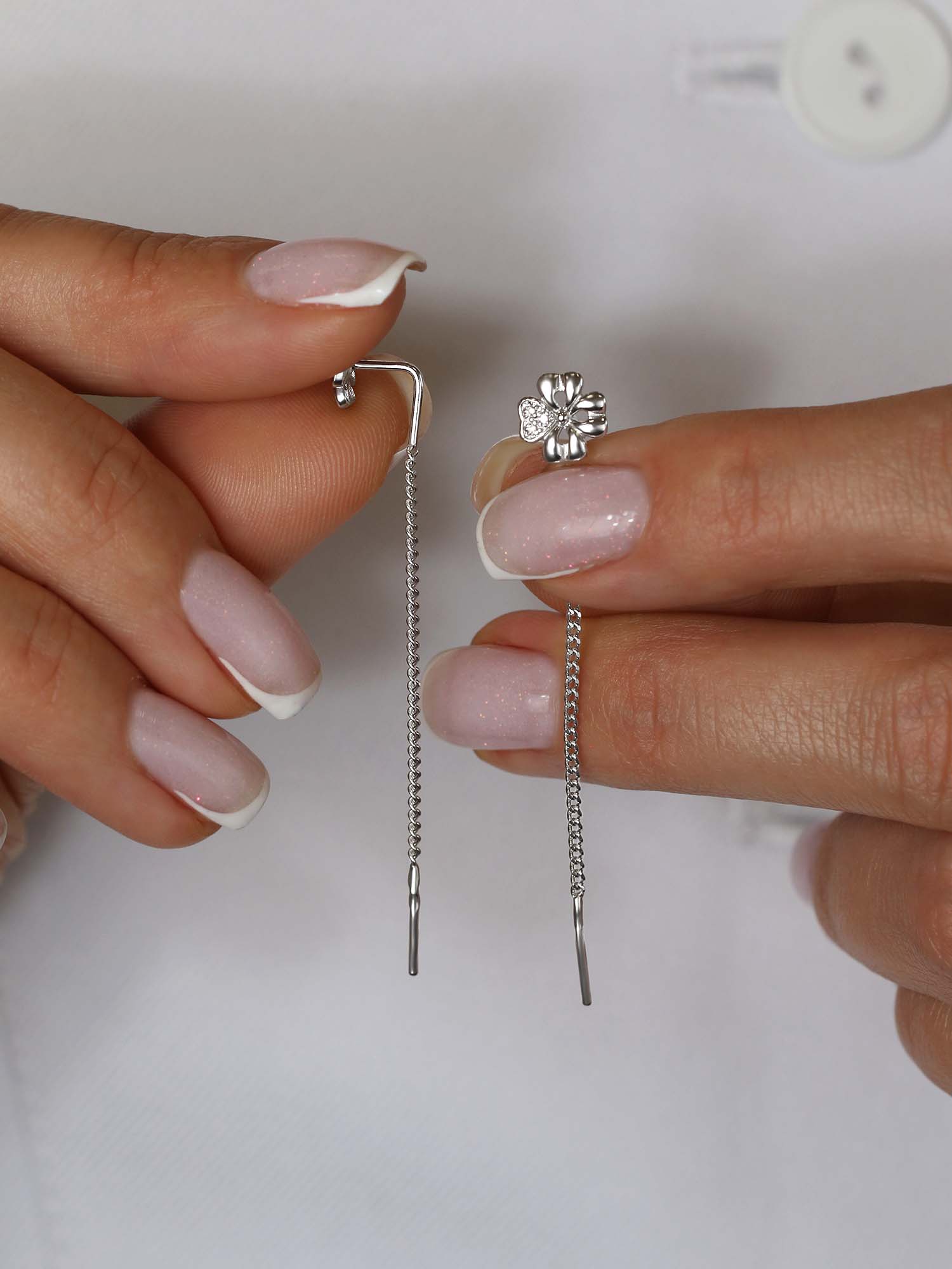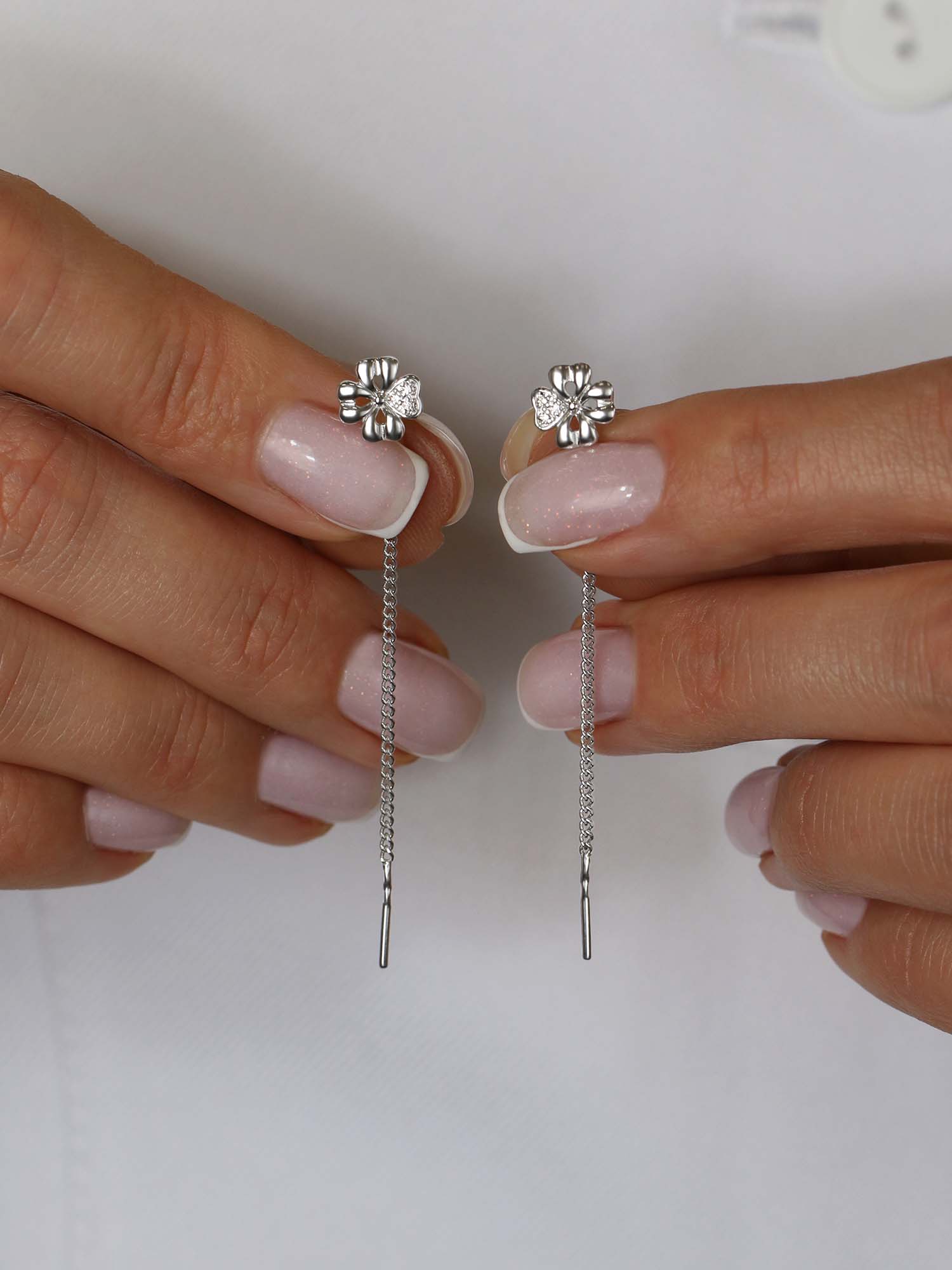 Серьги-продёвки из серебра с фианитами родированные - Клевер