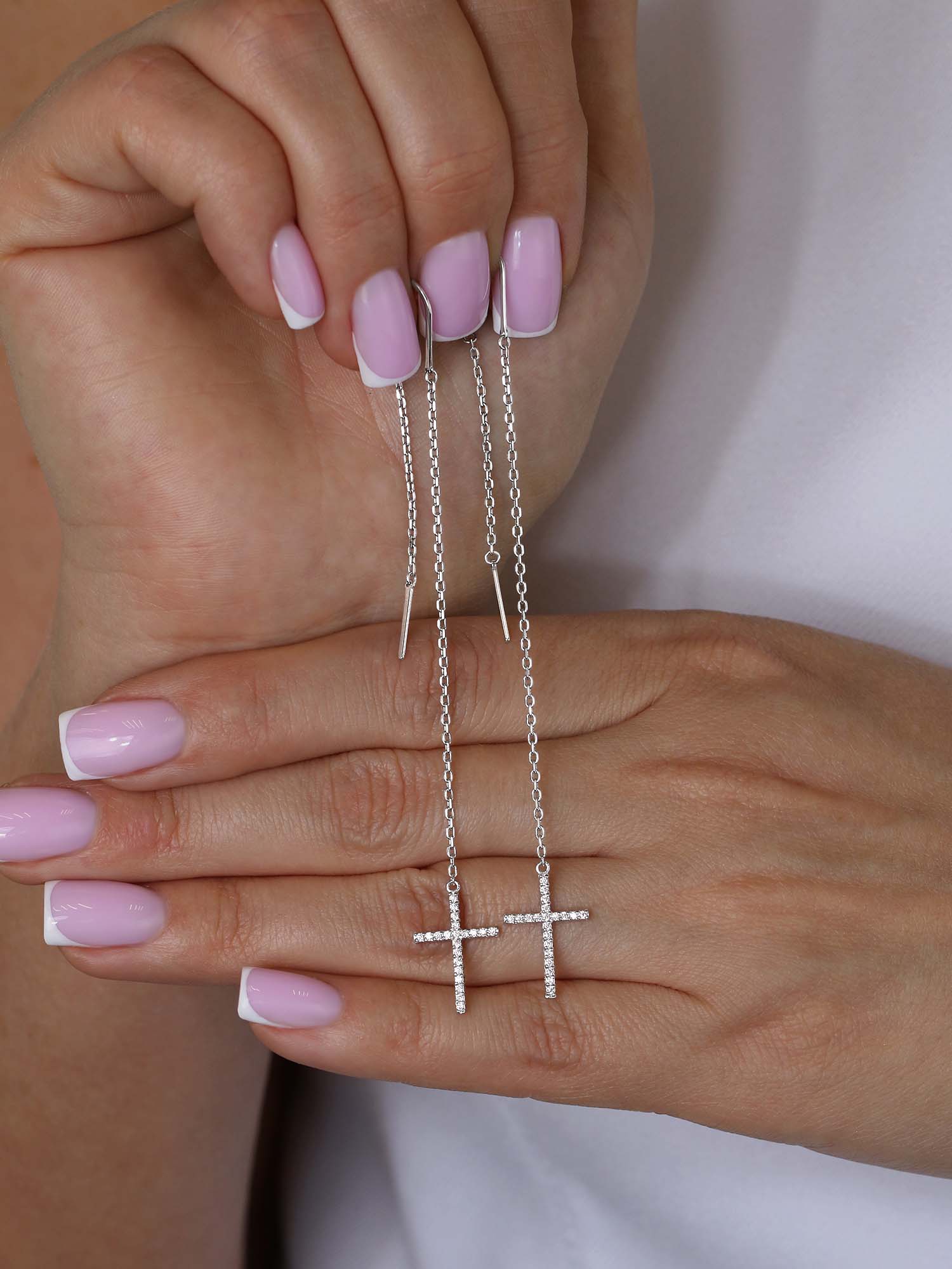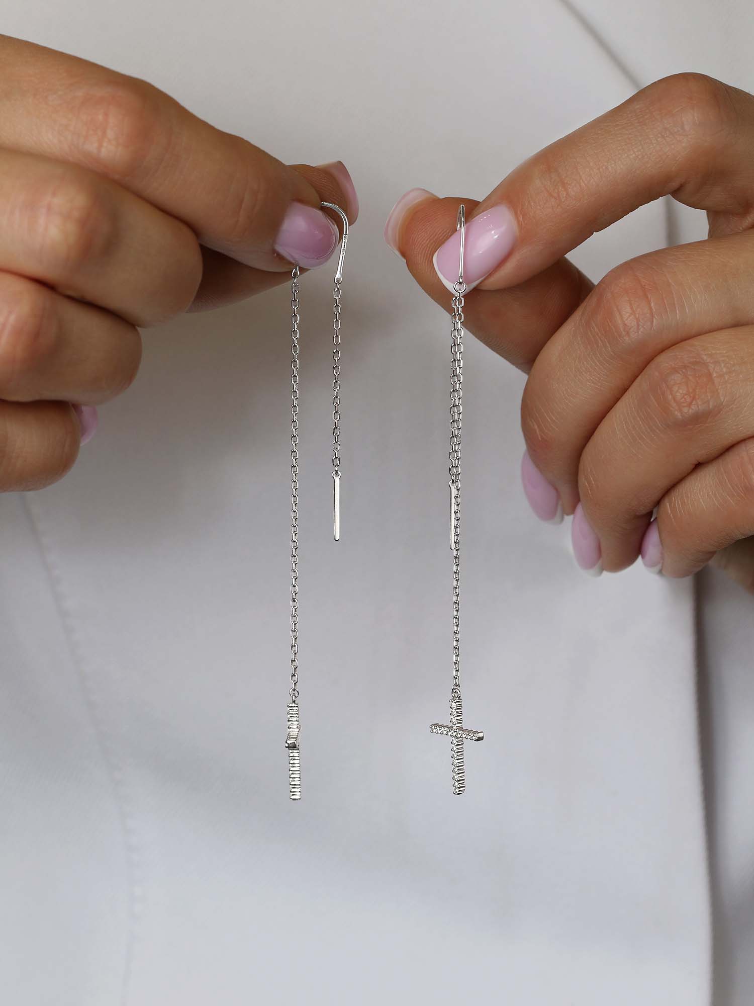 Серьги-продёвки из серебра с фианитами родированные 925 пробы 421-10-707р