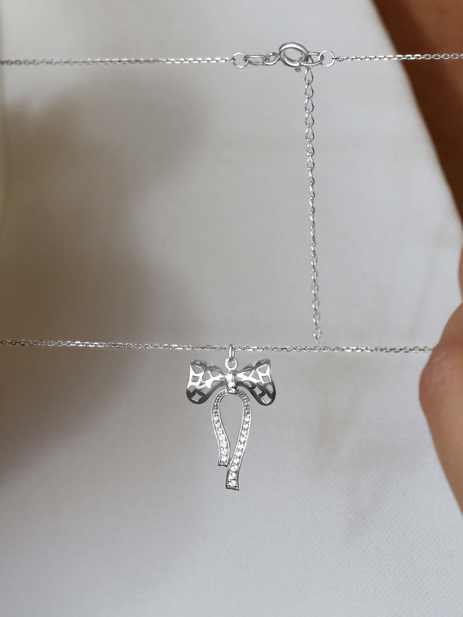 Колье из серебра с фианитами родированное - Бант 925 пробы 241-10-269р