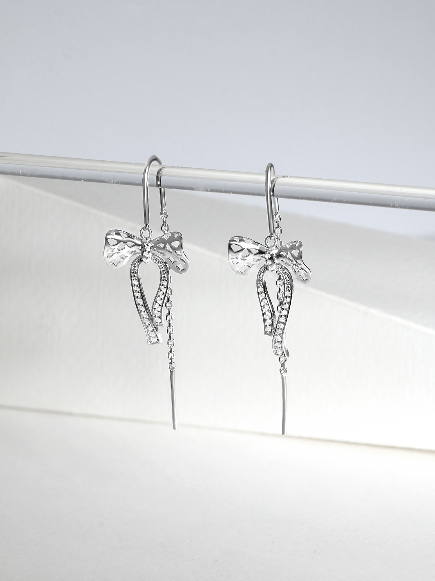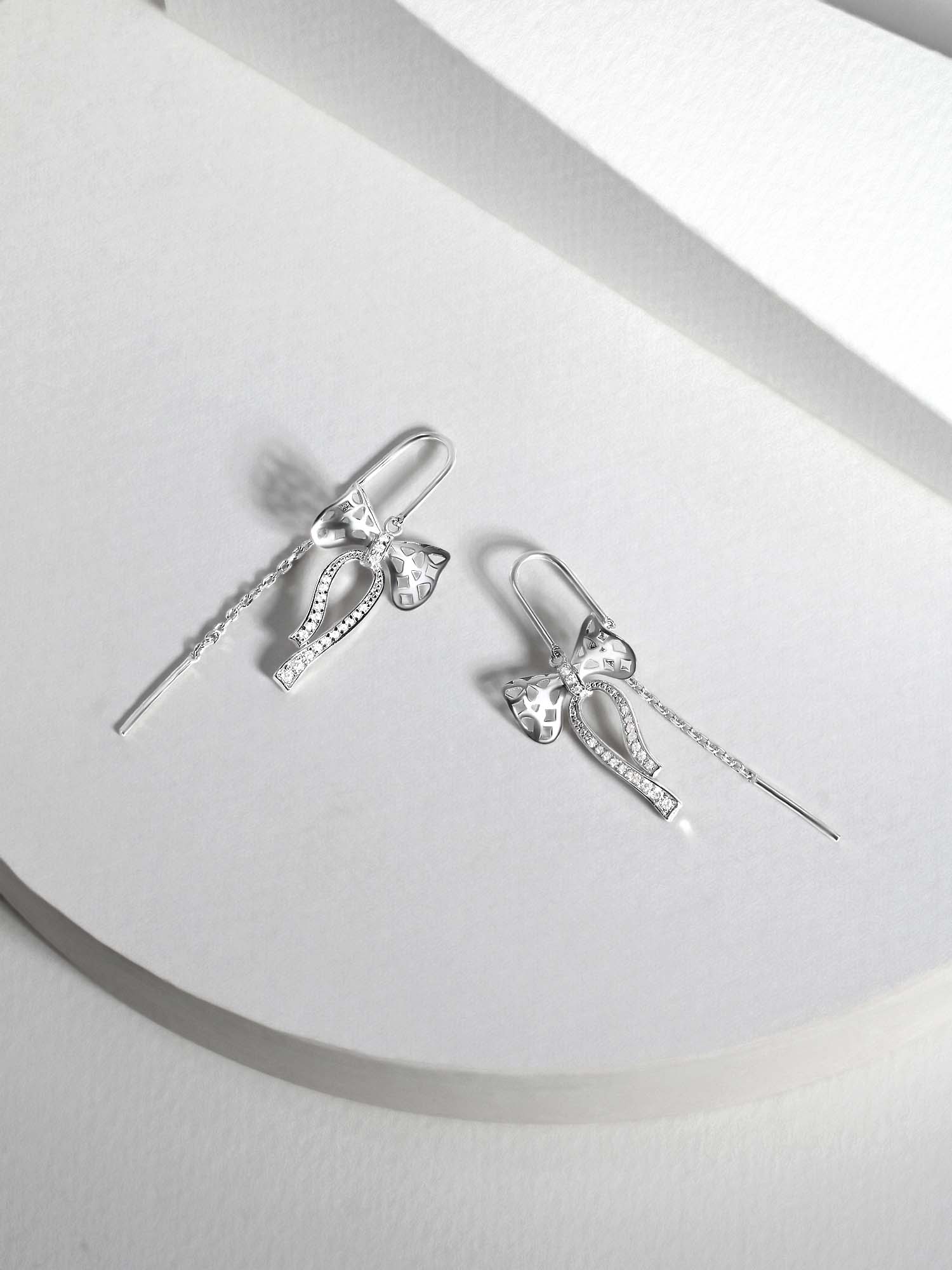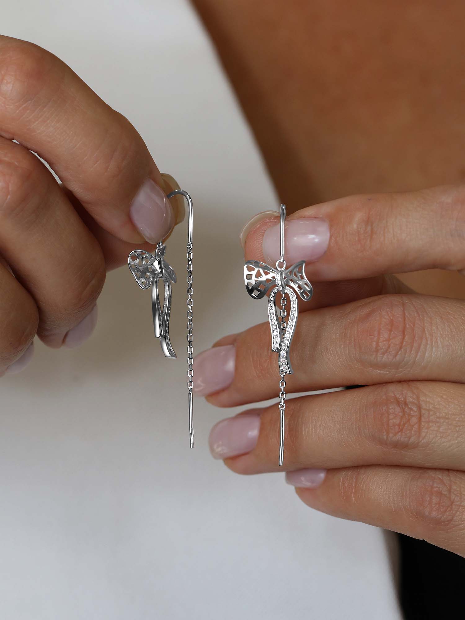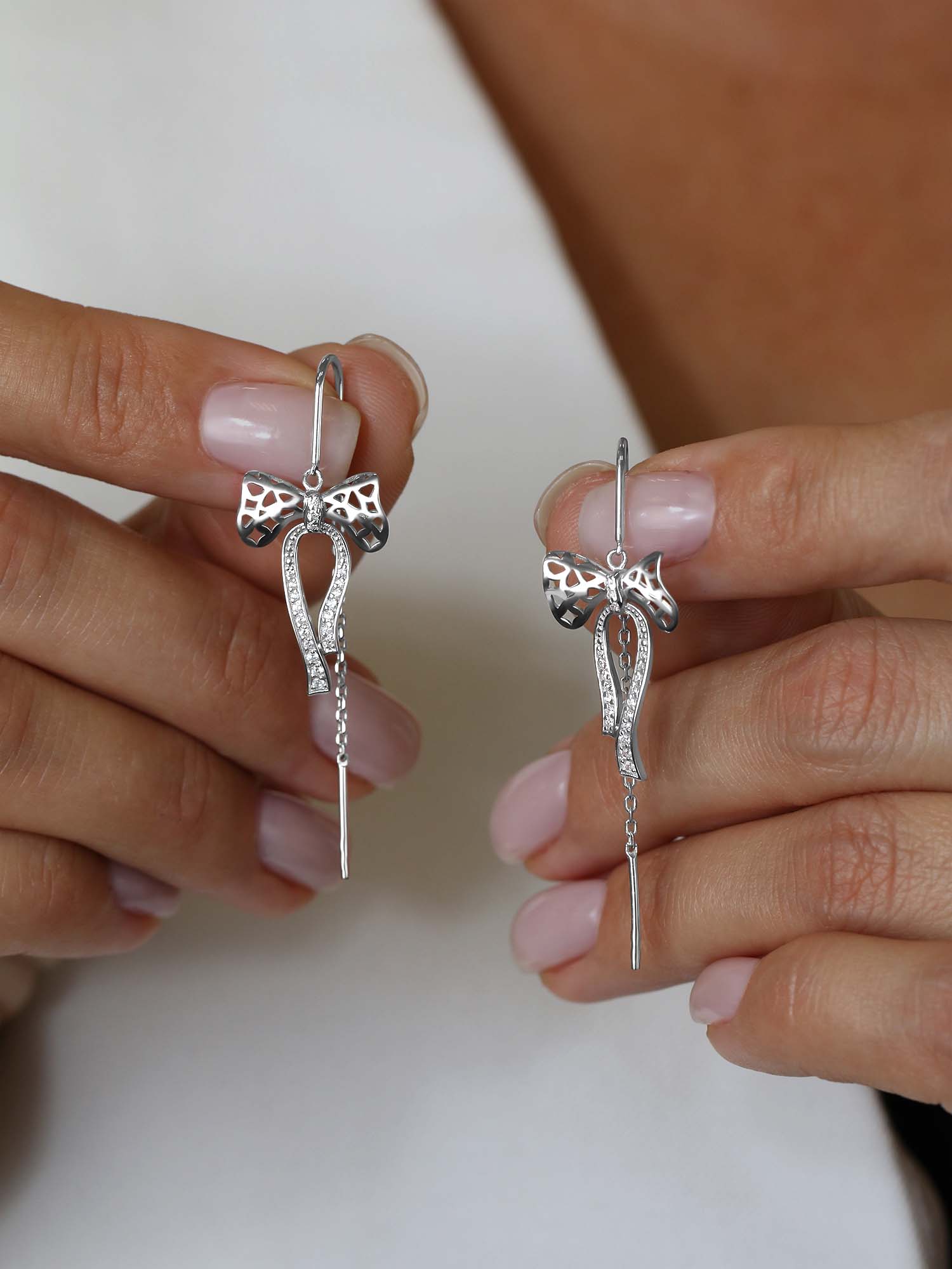 Серьги-продёвки из серебра с фианитами родированные - Банты