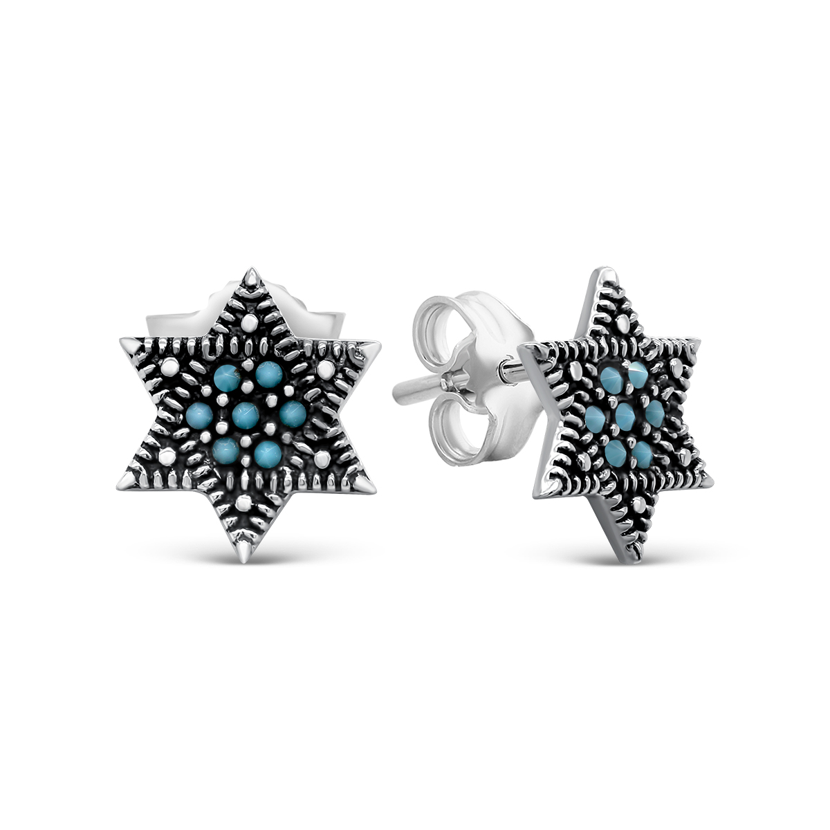 Серьги-пусеты из чернёного серебра с бирюзой NEJ0221о638