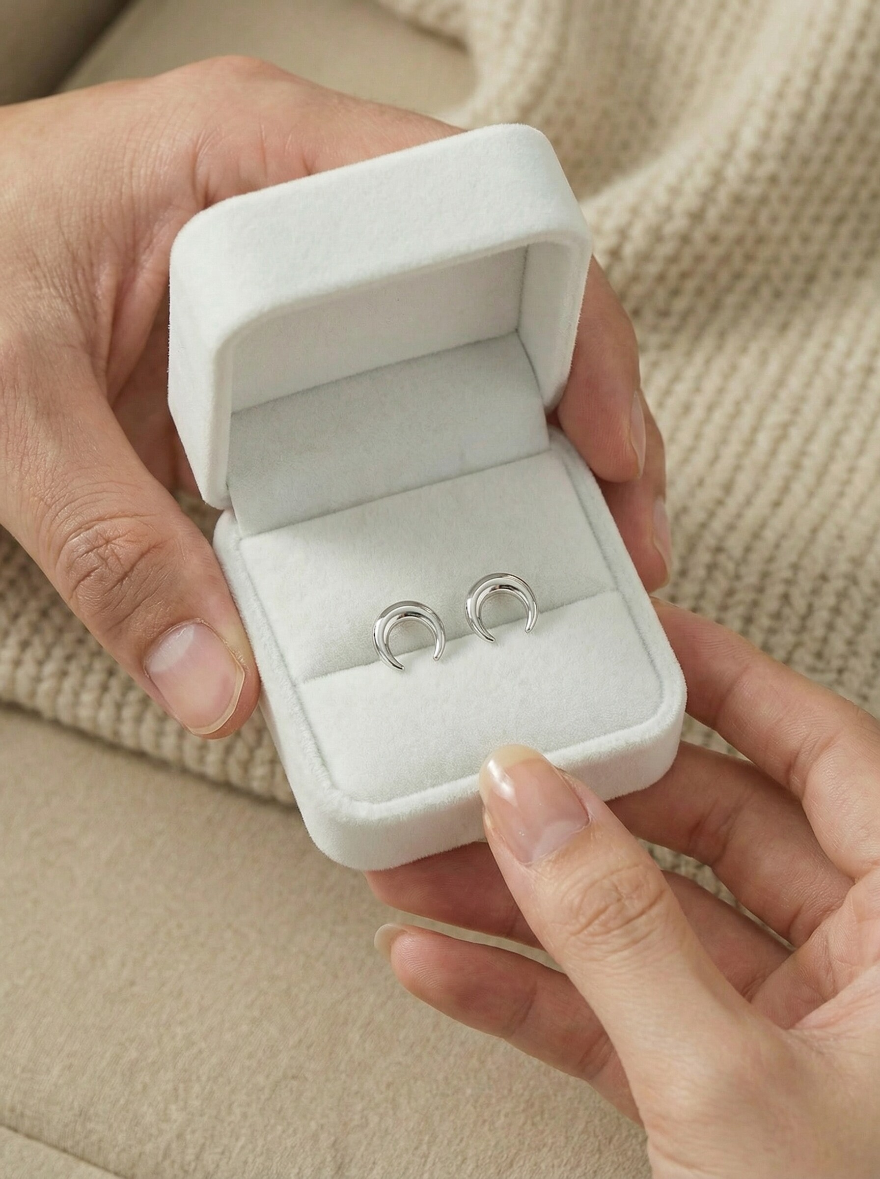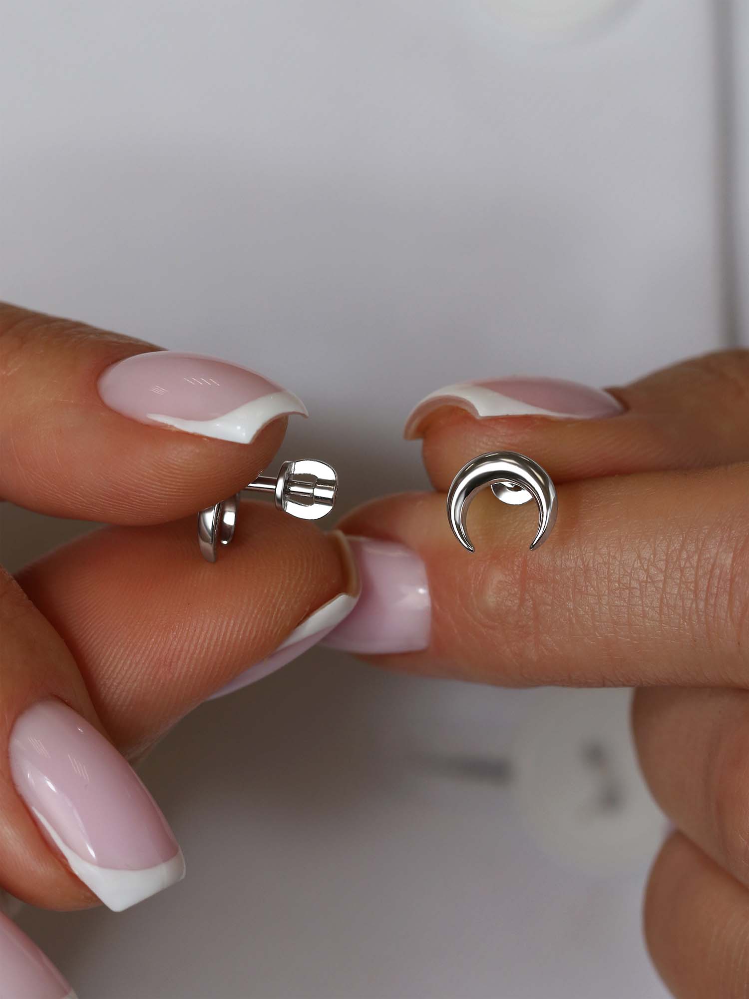 Серьги-пусеты из серебра родированные - Лунницы