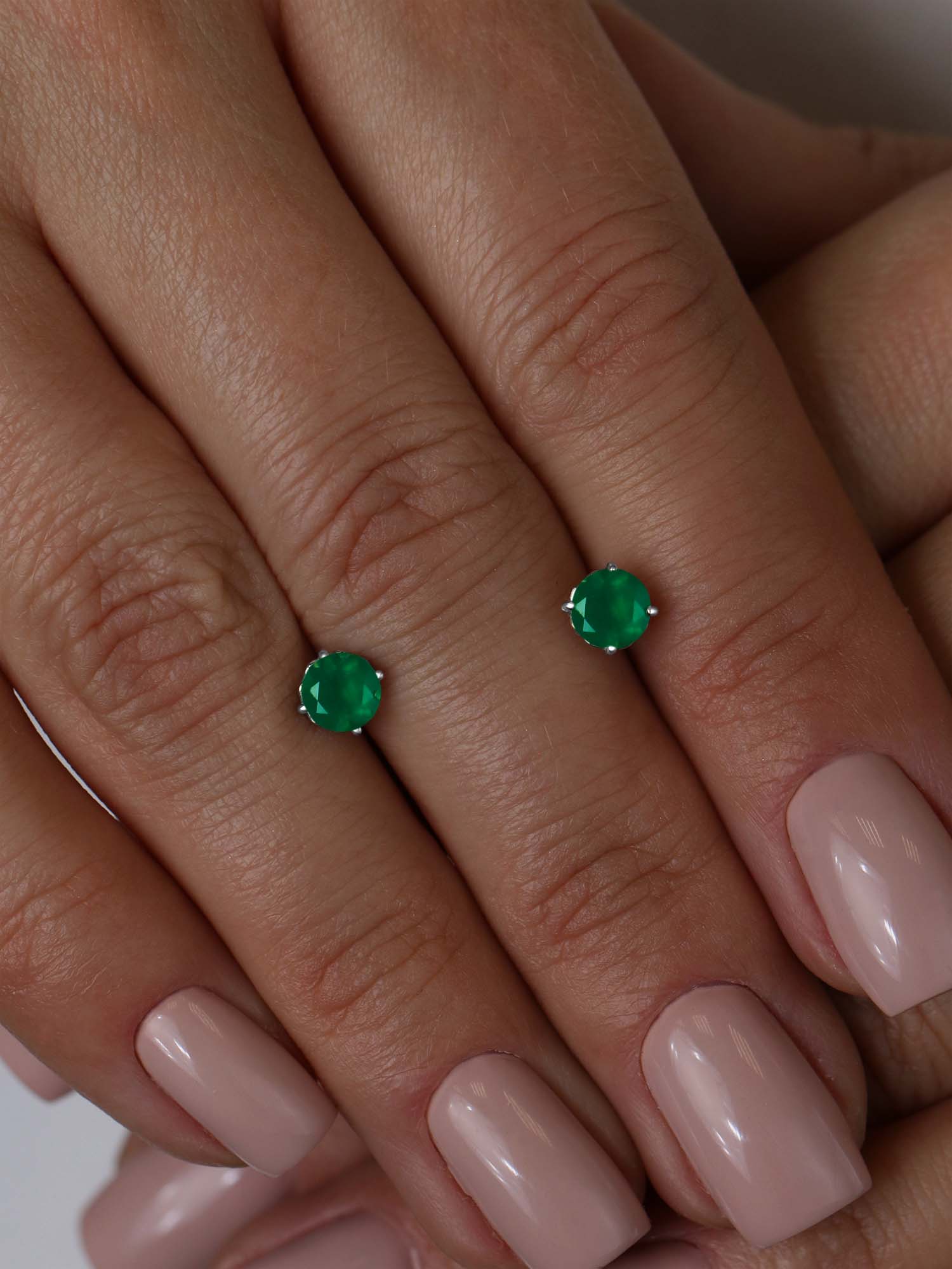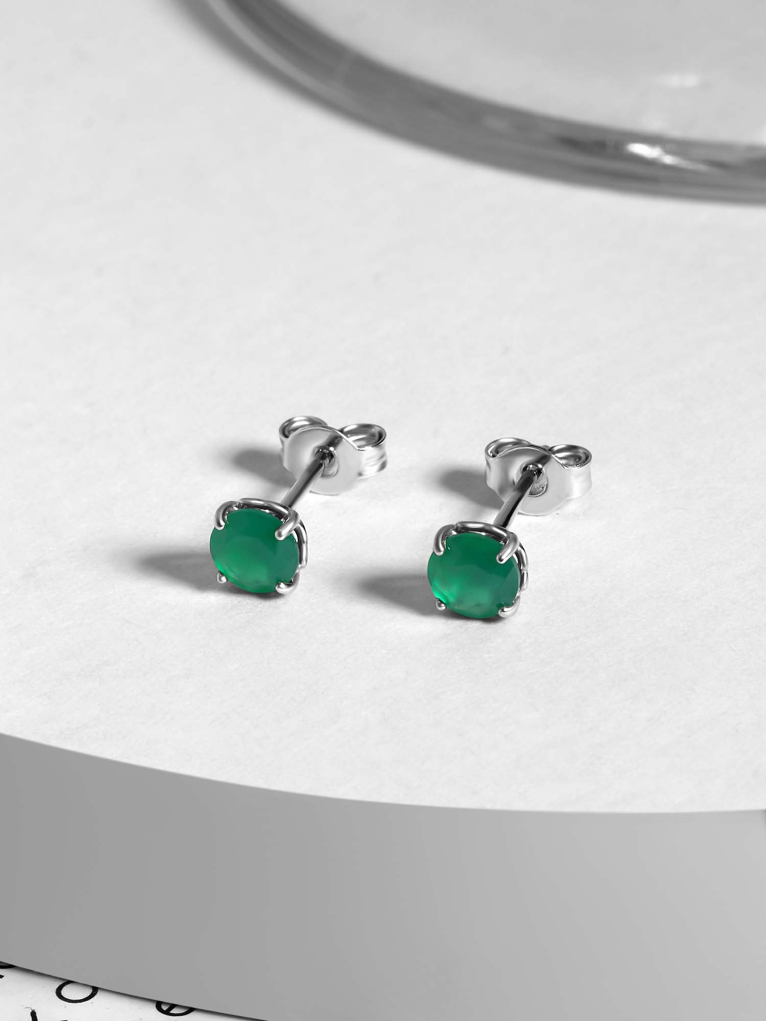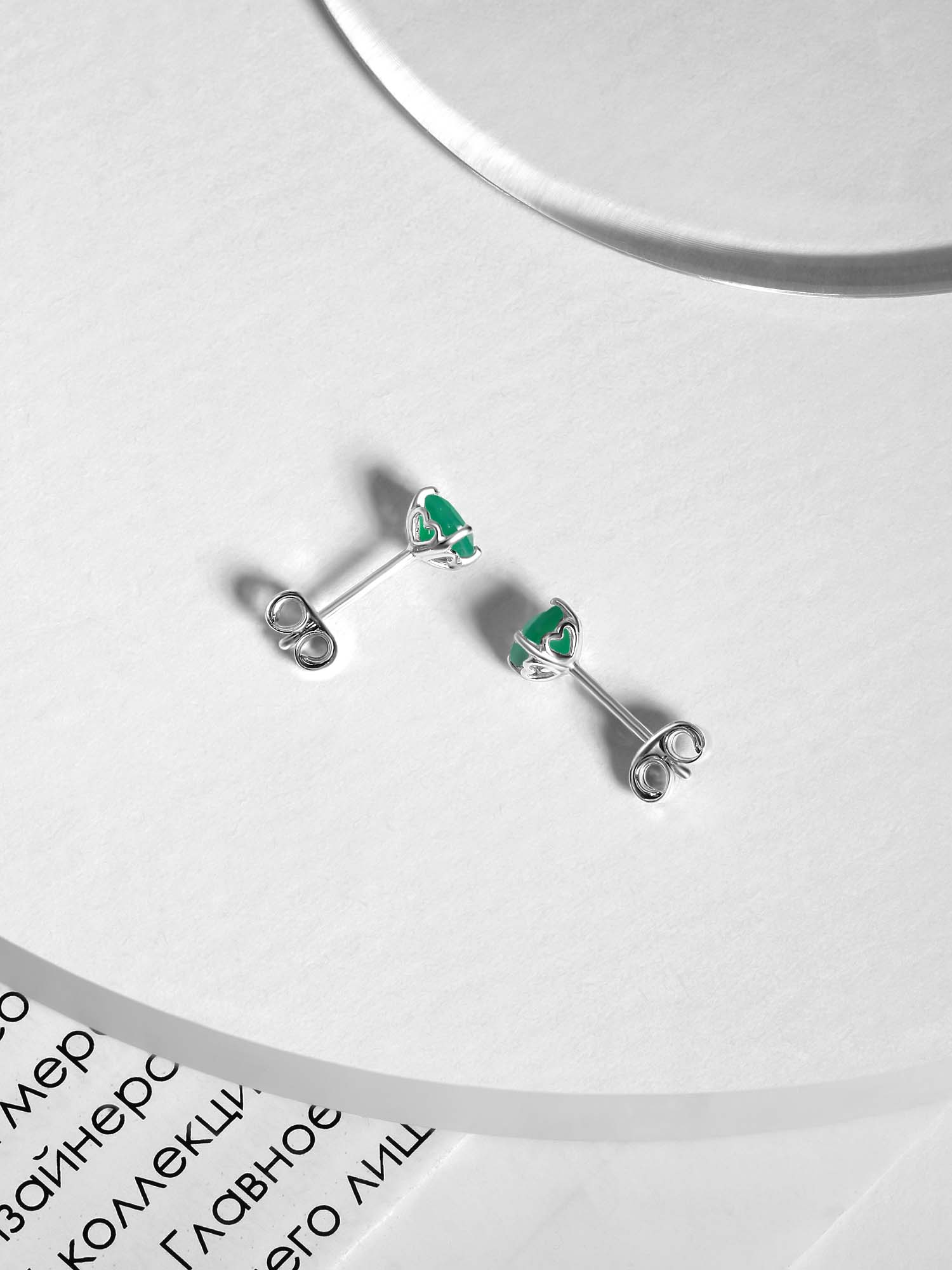 Серьги-пусеты из серебра с агатом родированные