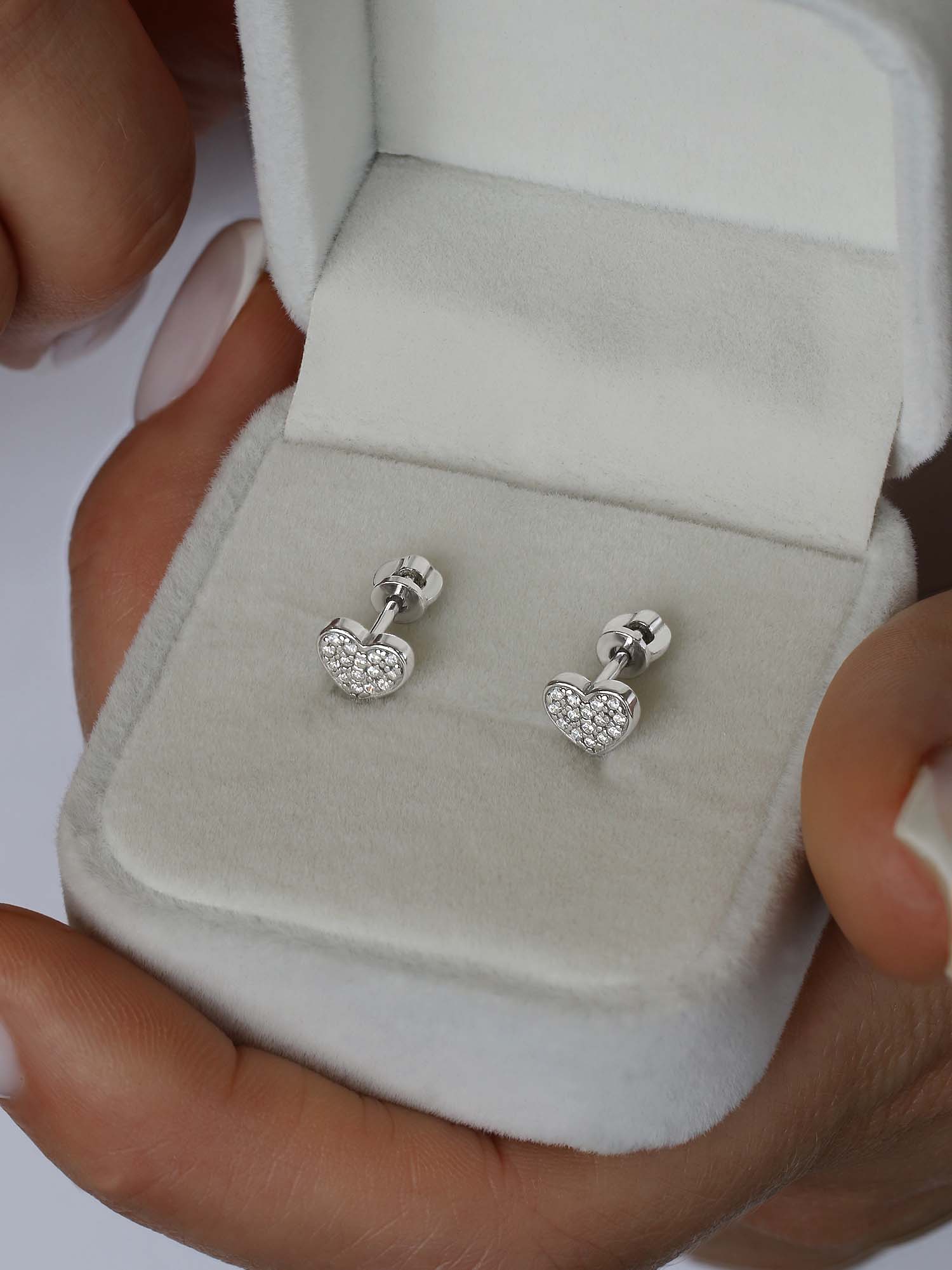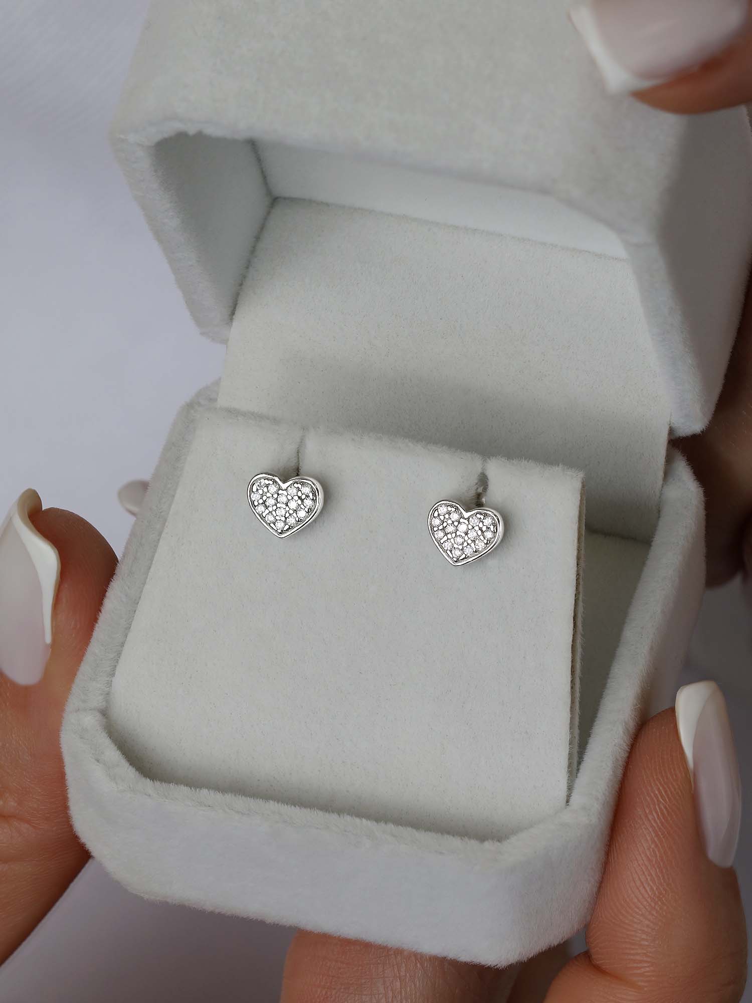 Серьги-пусеты из серебра с фианитами родированные