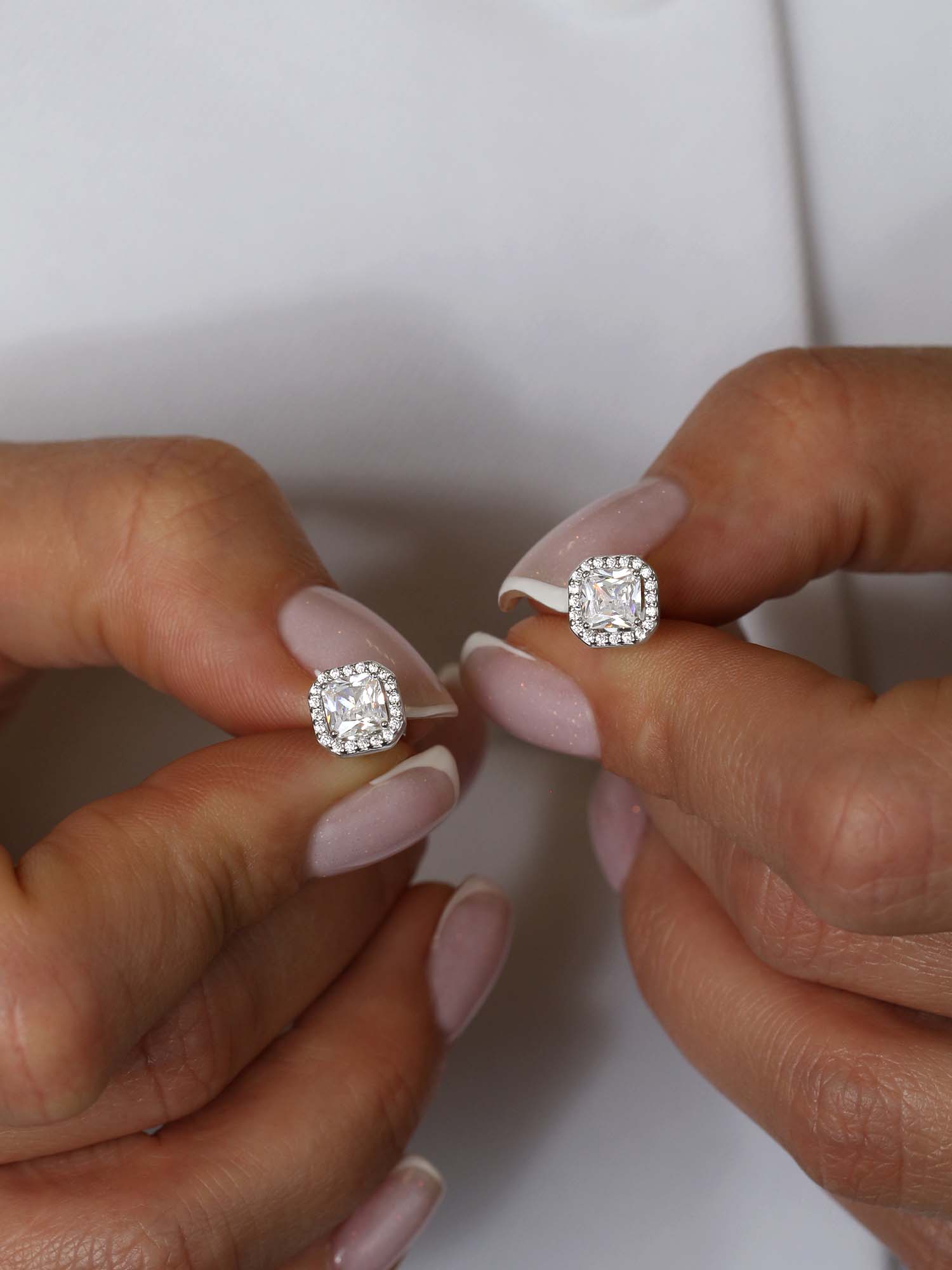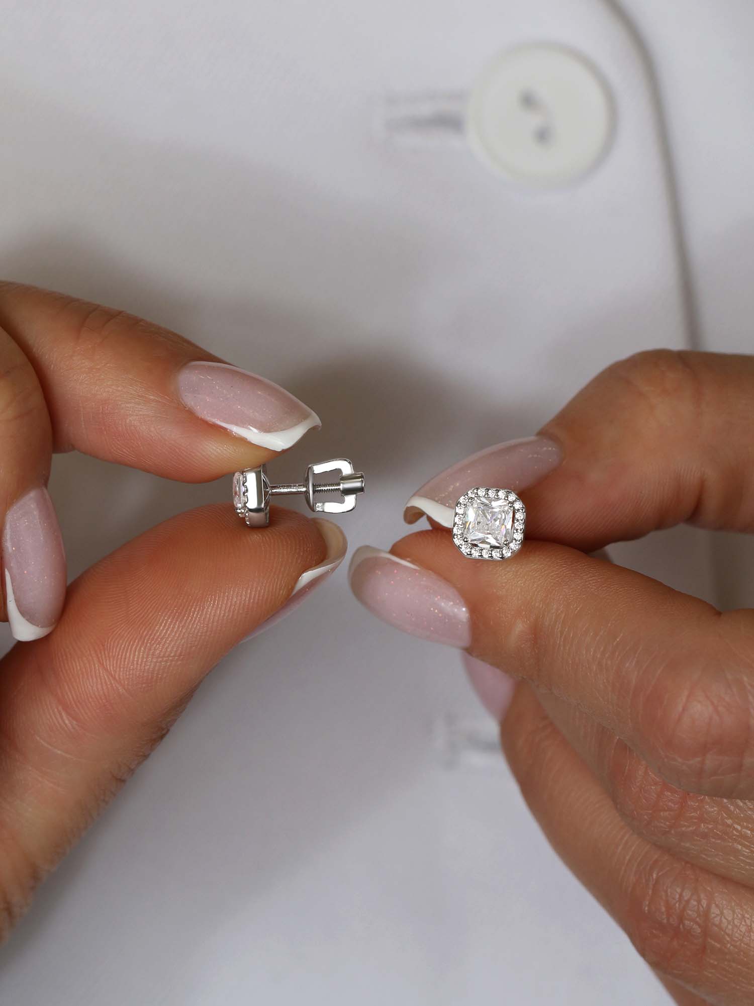 Серьги-пусеты из серебра с фианитами родированные