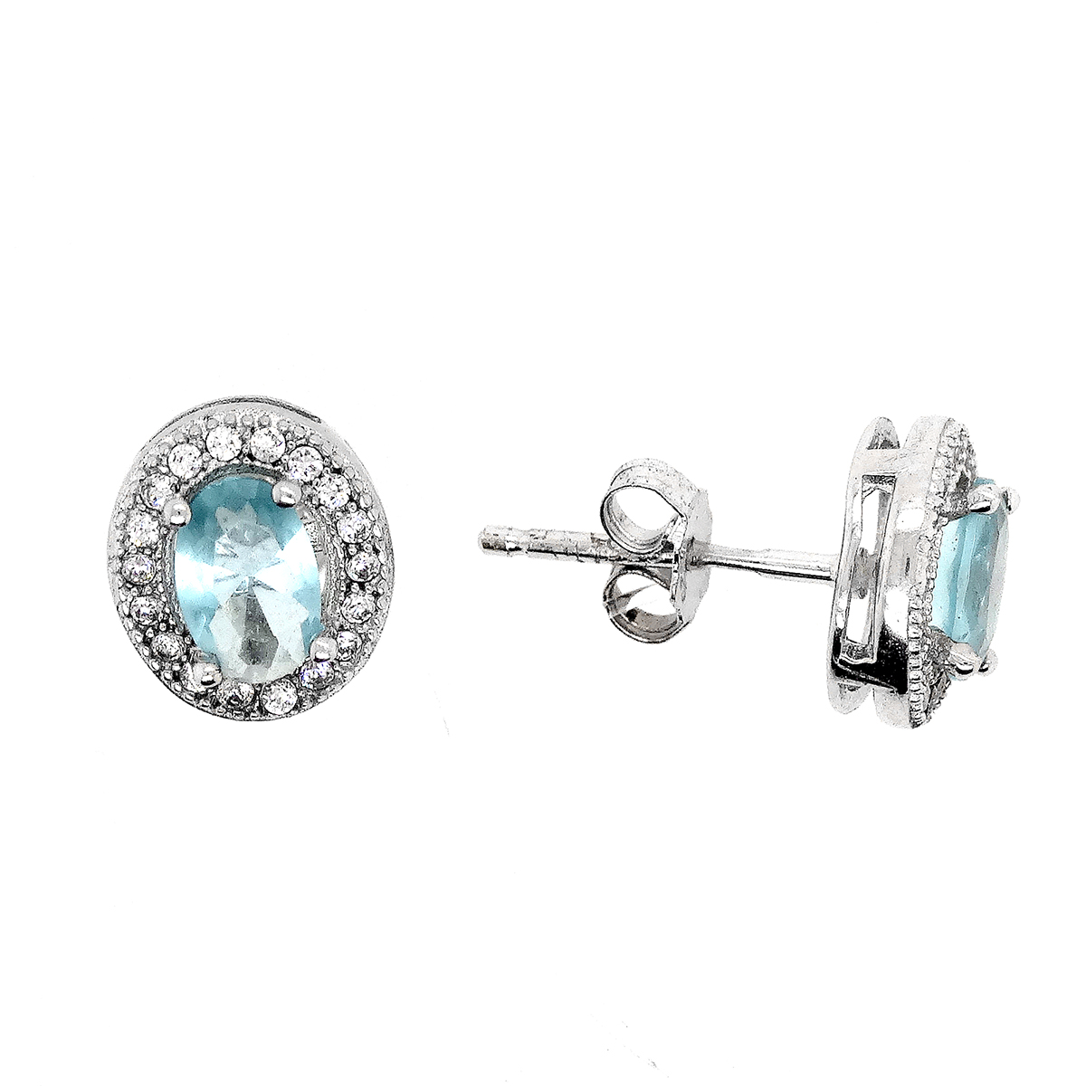 Серьги-пусеты из серебра с фианитами родированные