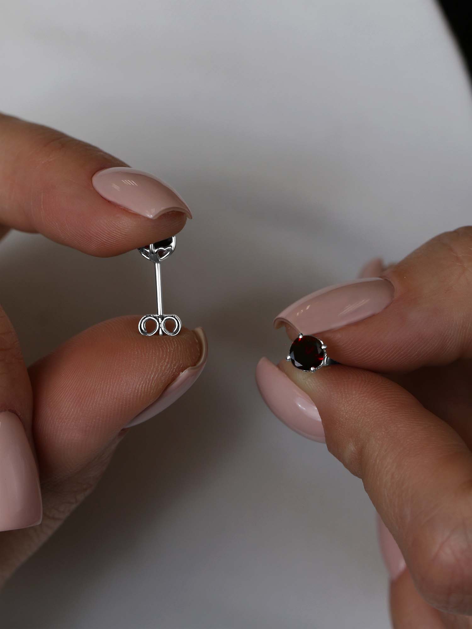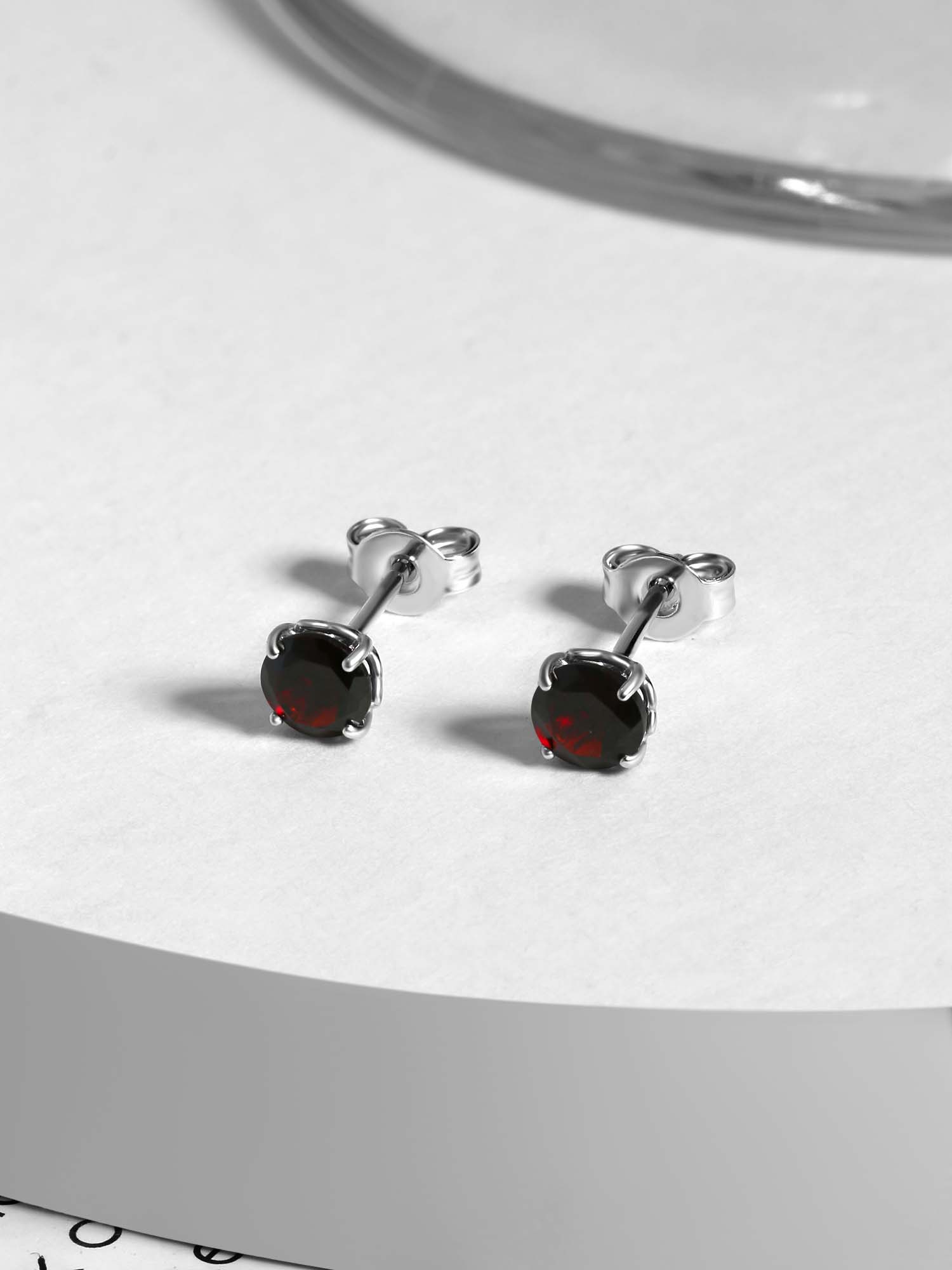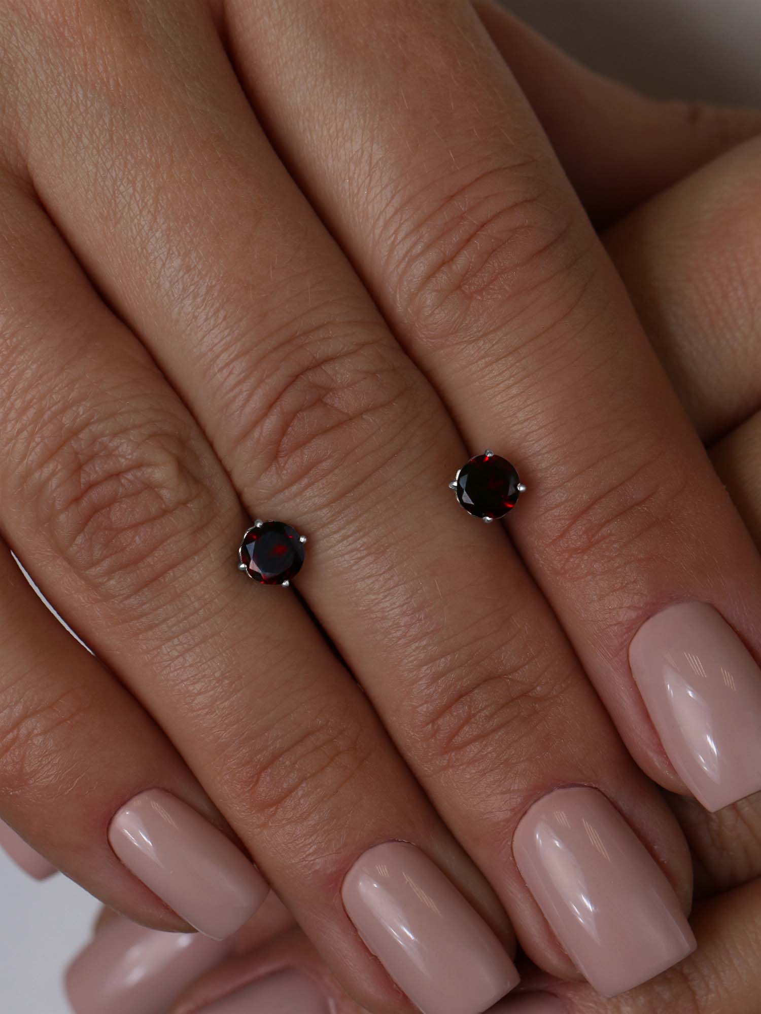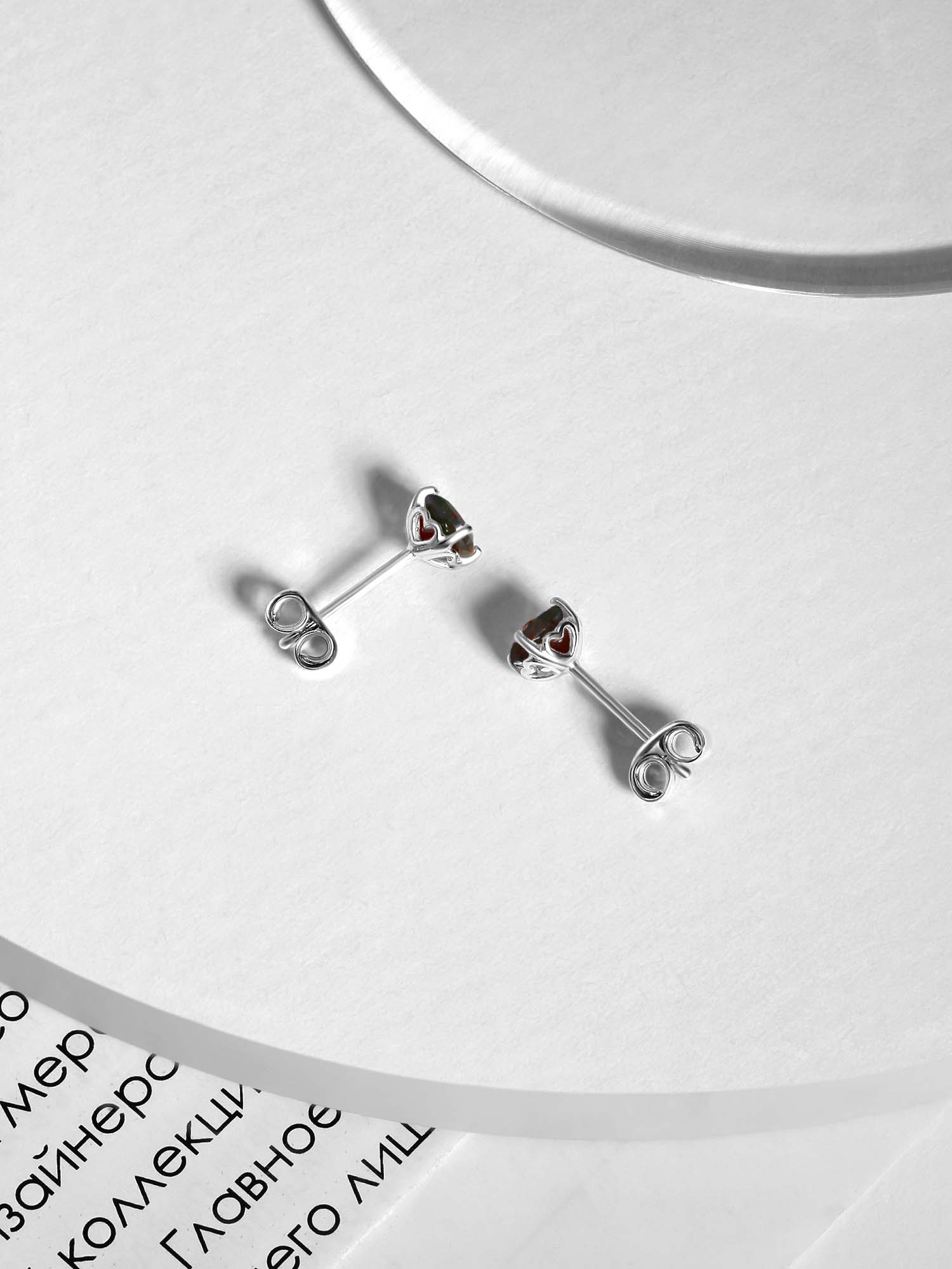 Серьги-пусеты из серебра с гранатом родированные 150280р404