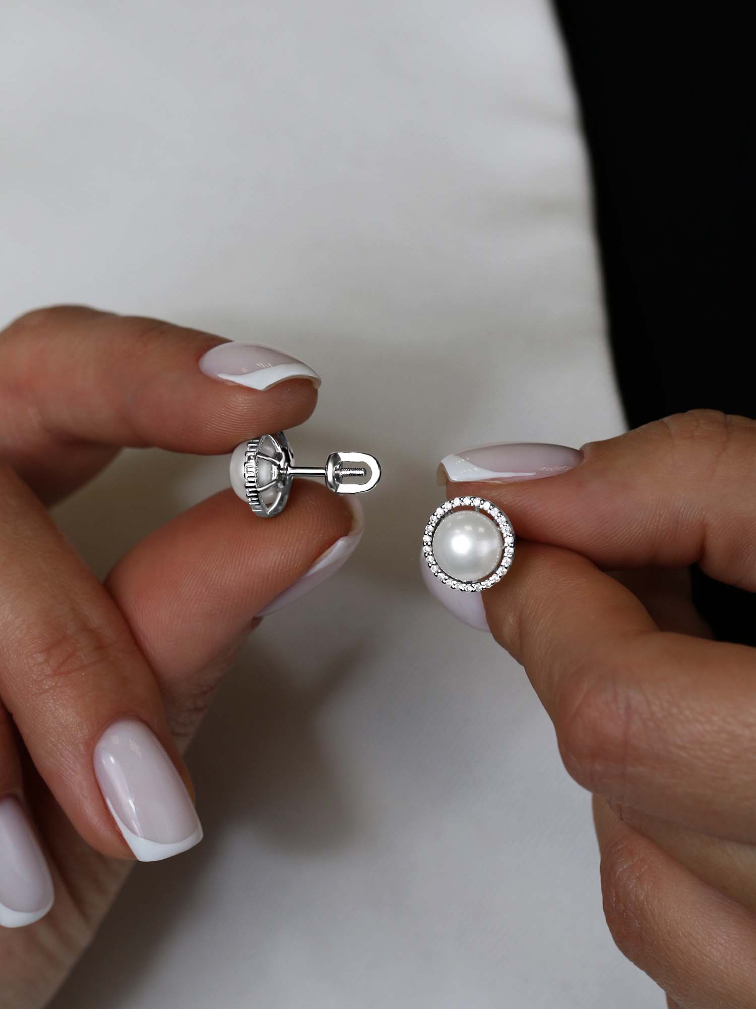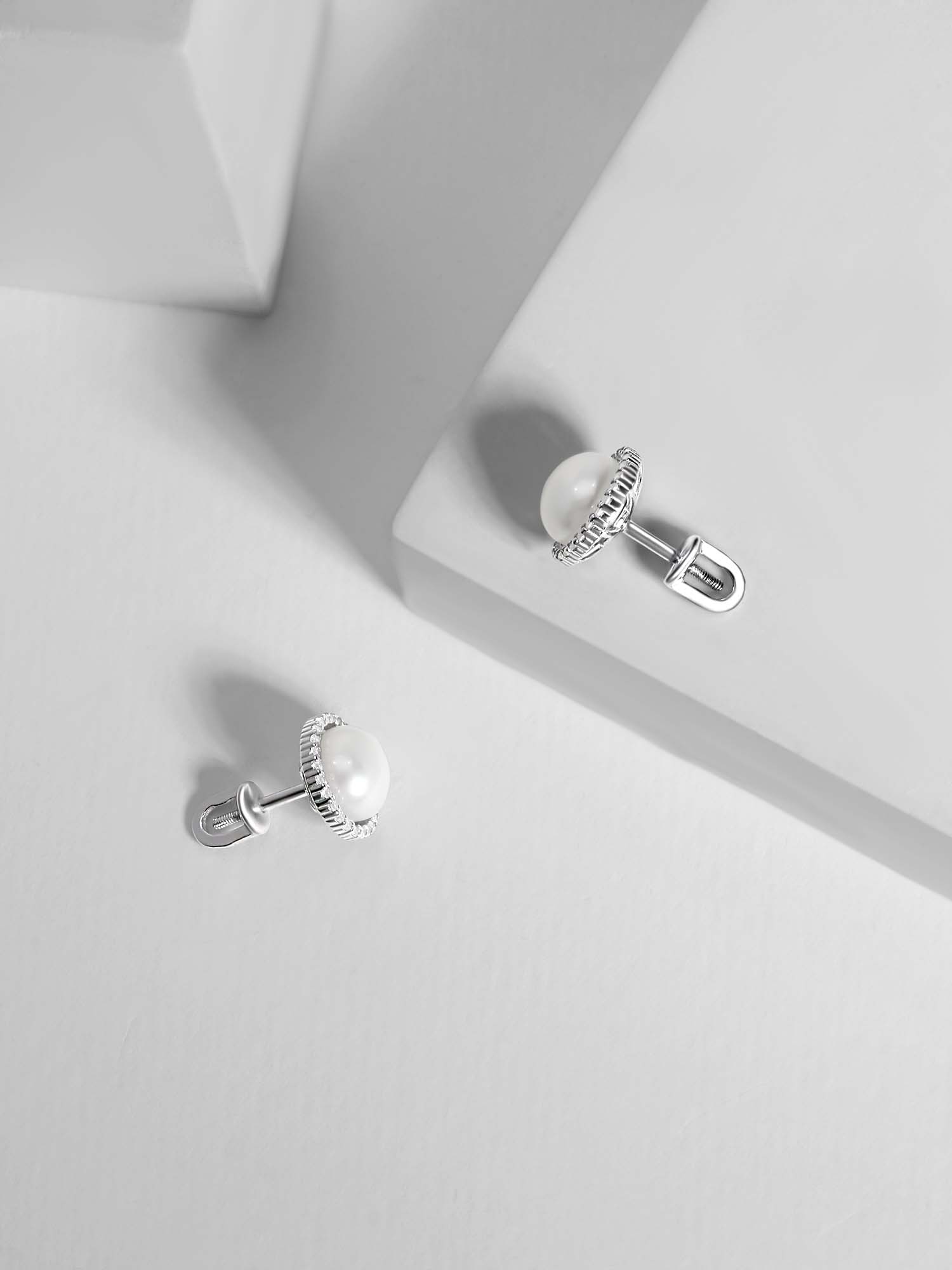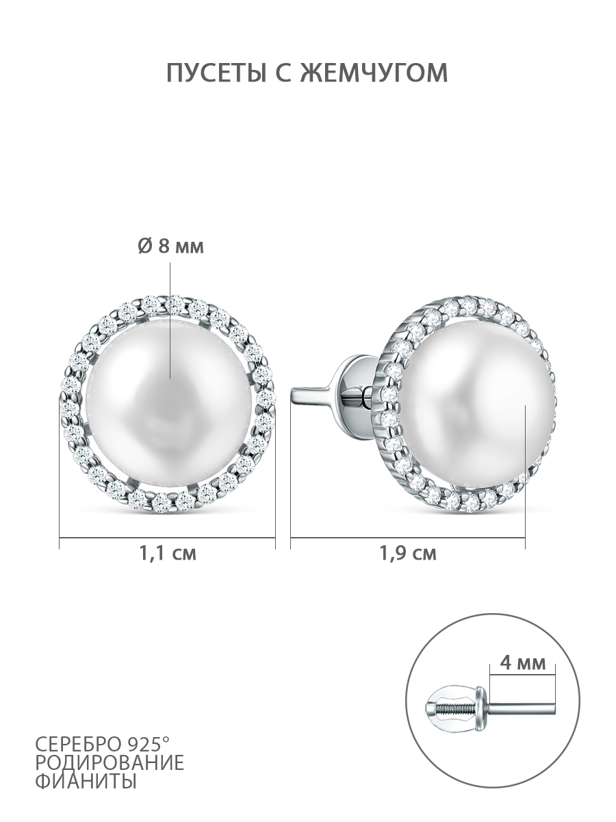 Серьги-пусеты из серебра с и фианитами родированные