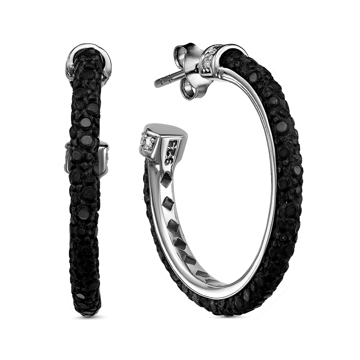 Серьги-пусеты из серебра с кожей ската, эмалью и куб.цирконием родированные