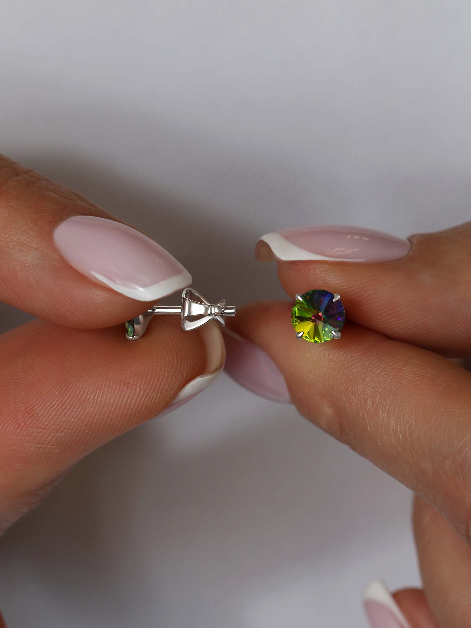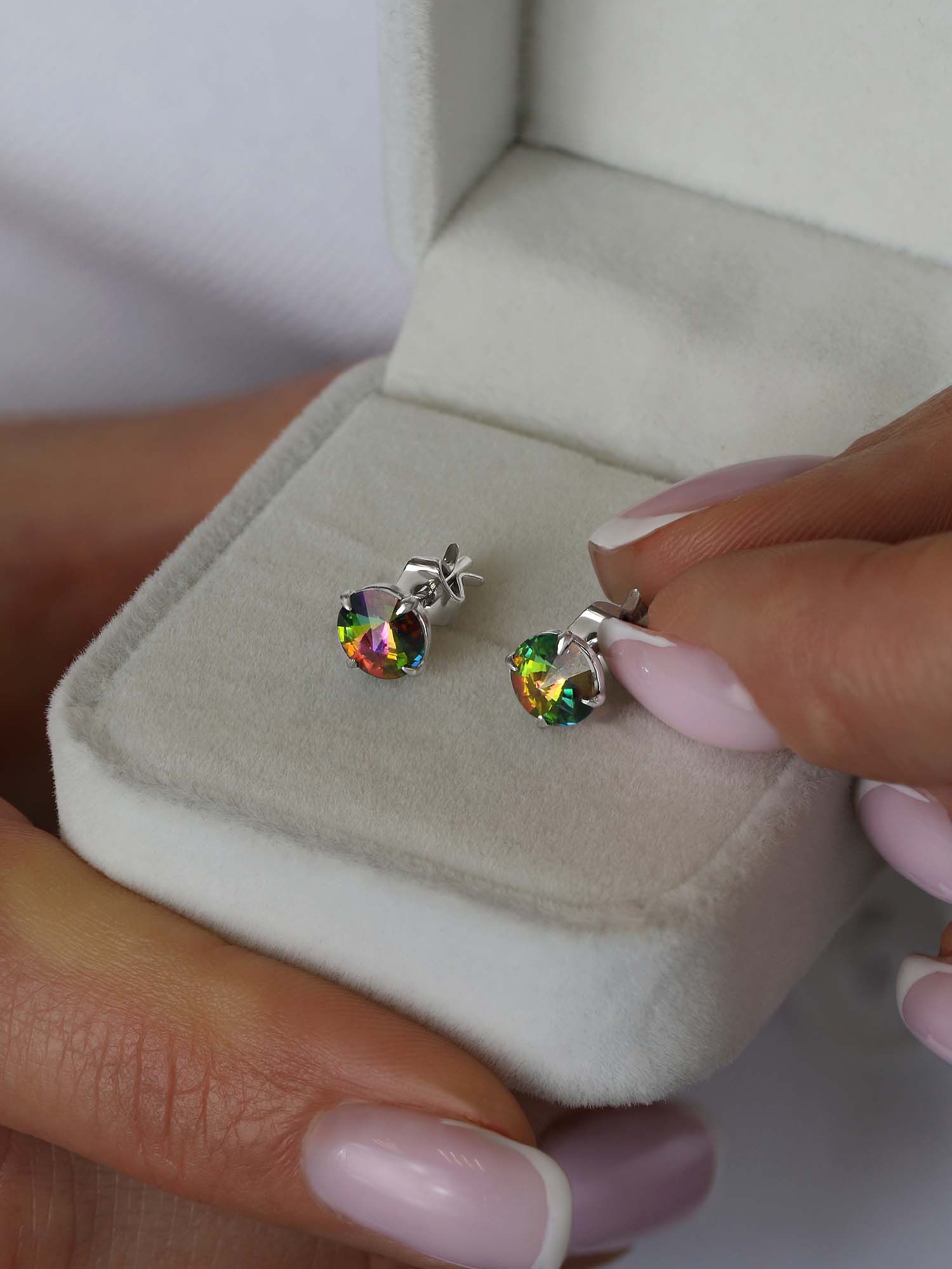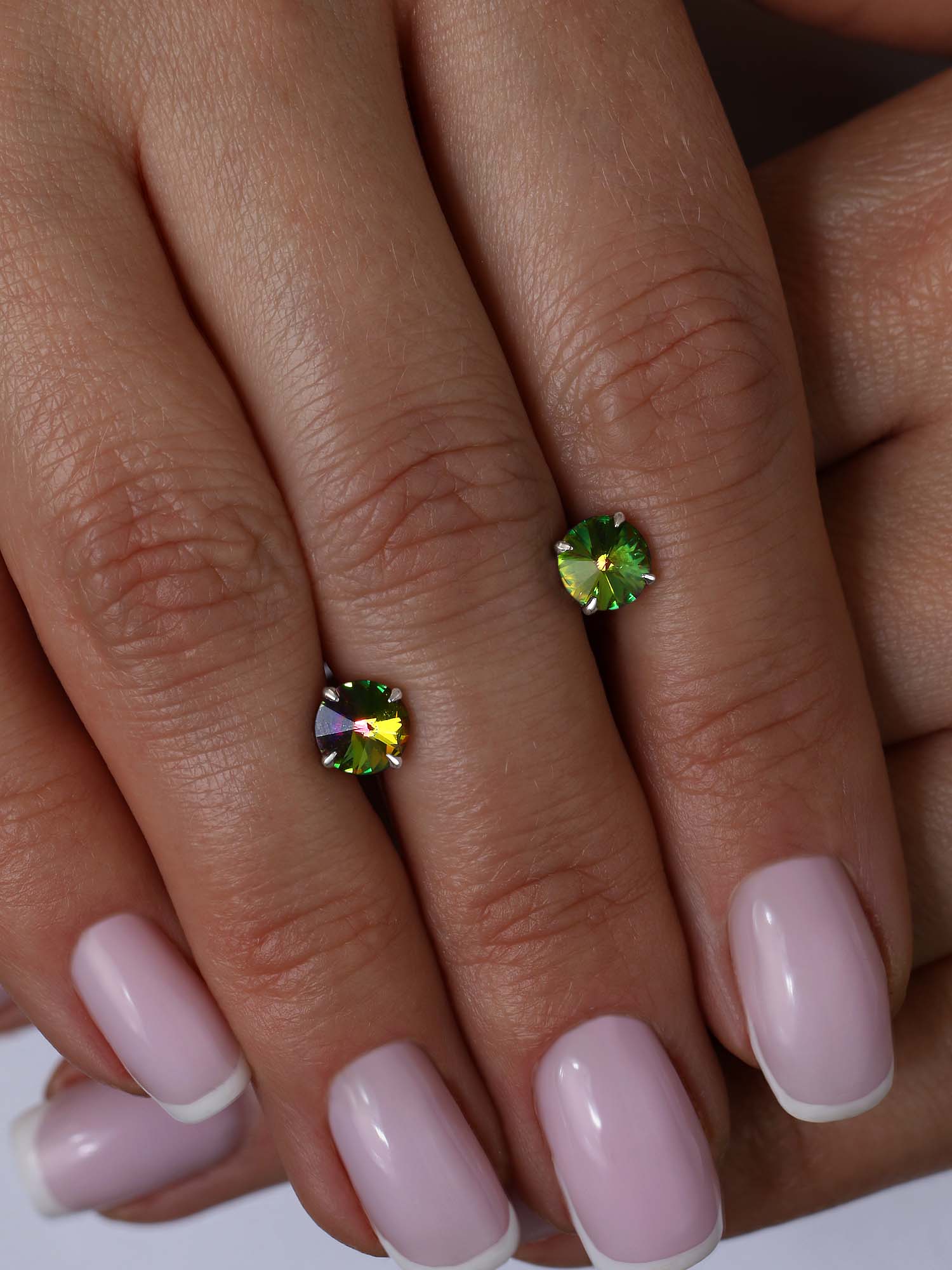 Серьги-пусеты из серебра с кристаллами премиум Австрия мистик зелёный родированные
