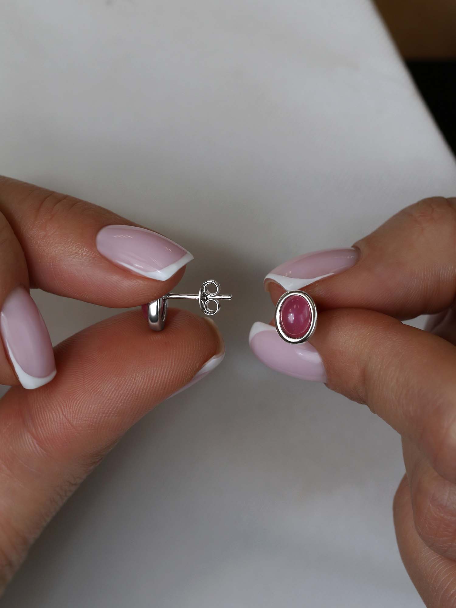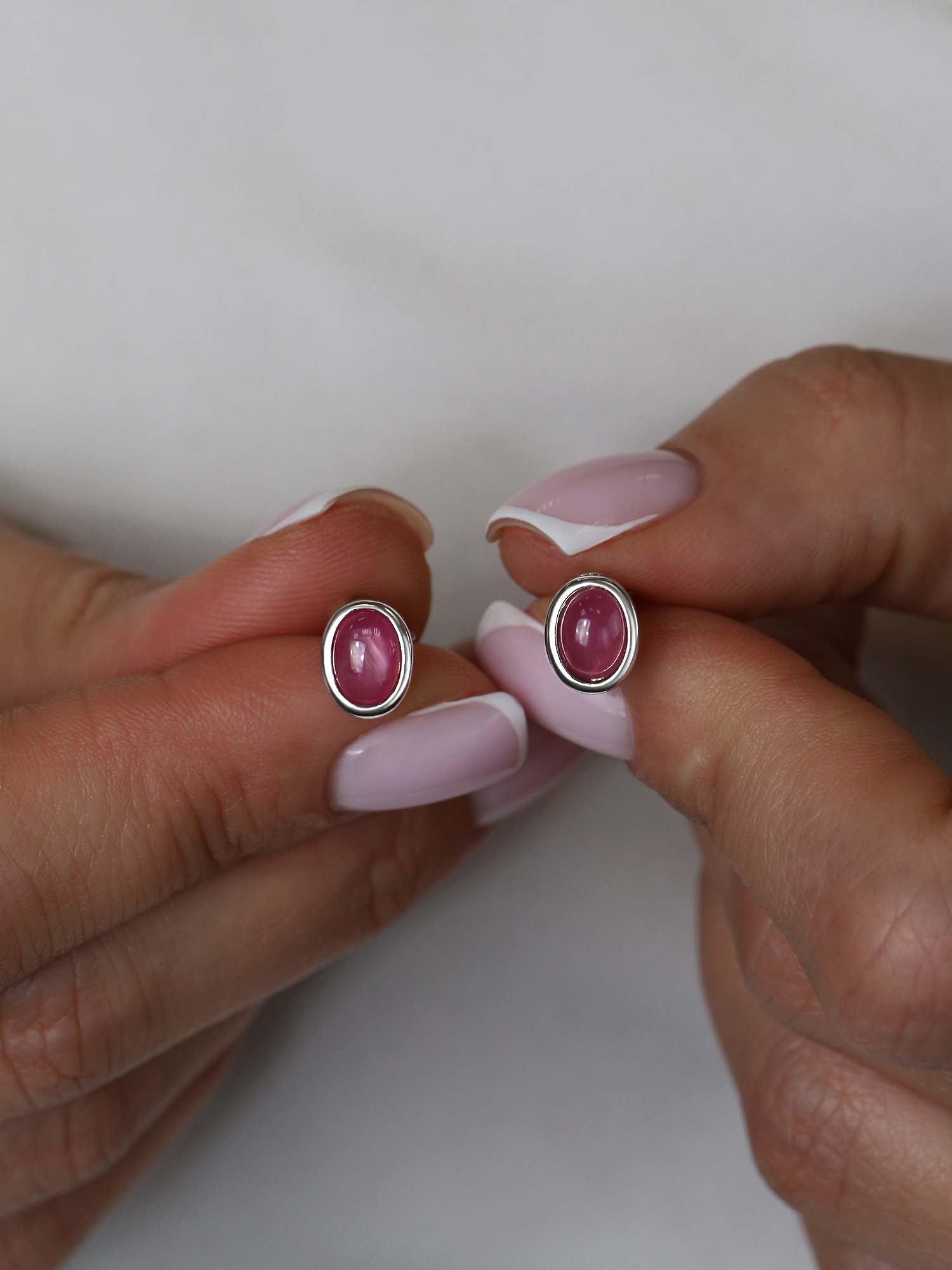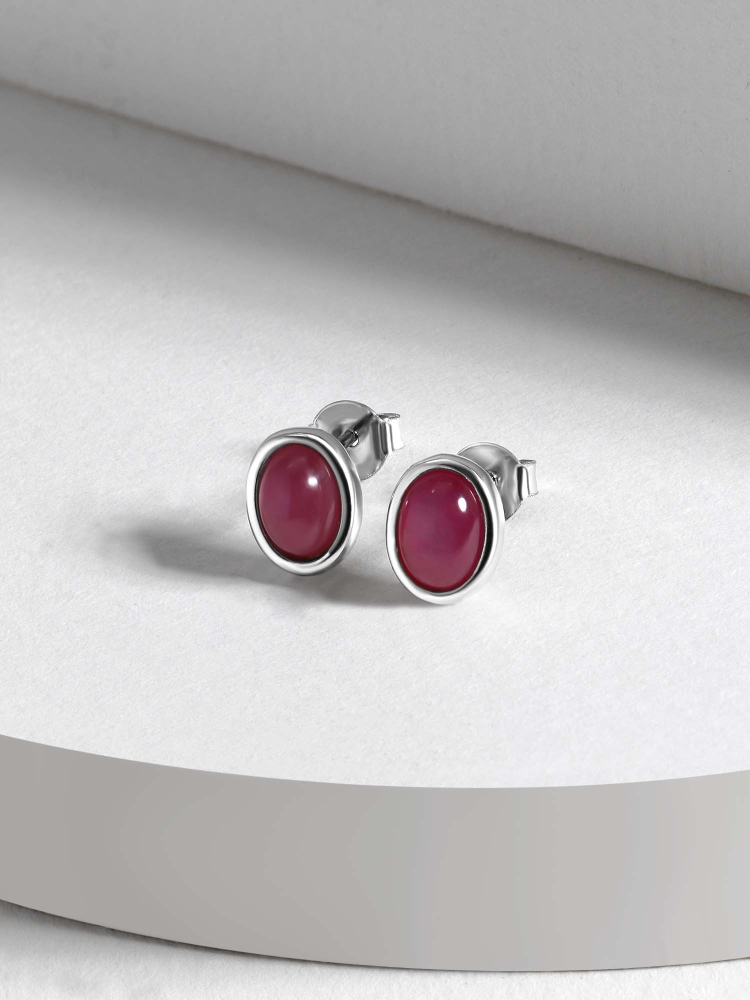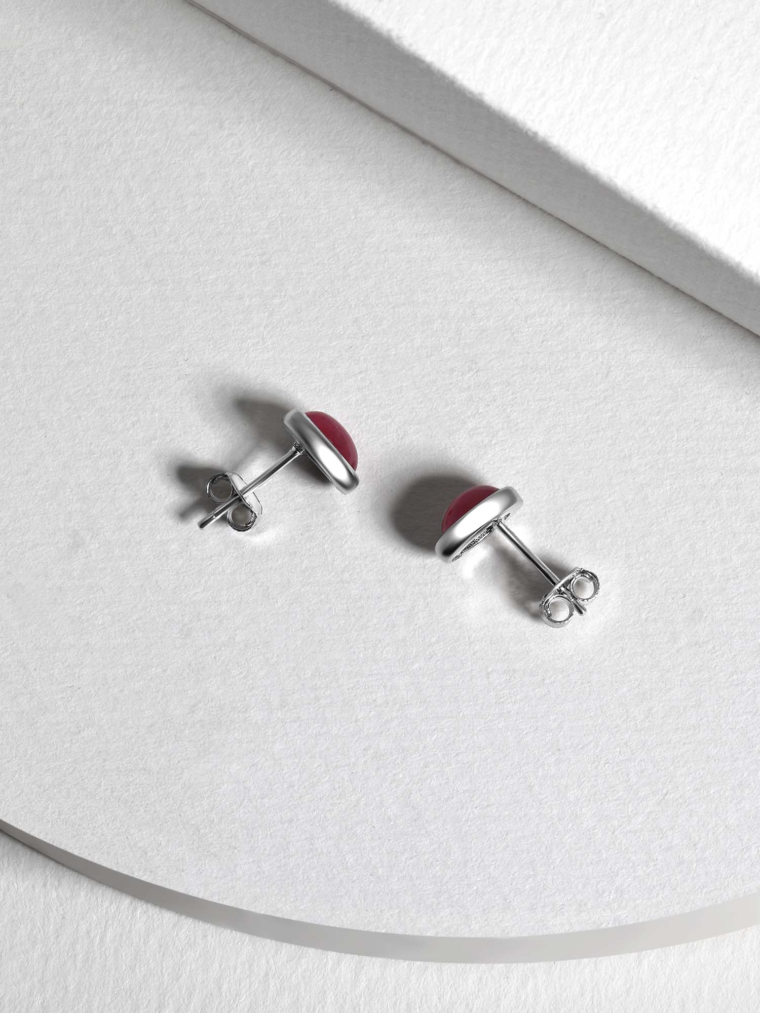 Серьги-пусеты из серебра с рубином родированные 925 пробы GTE-201-PR