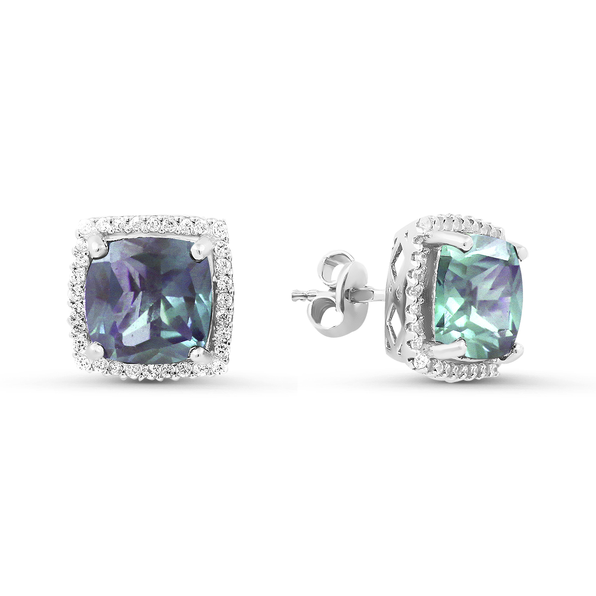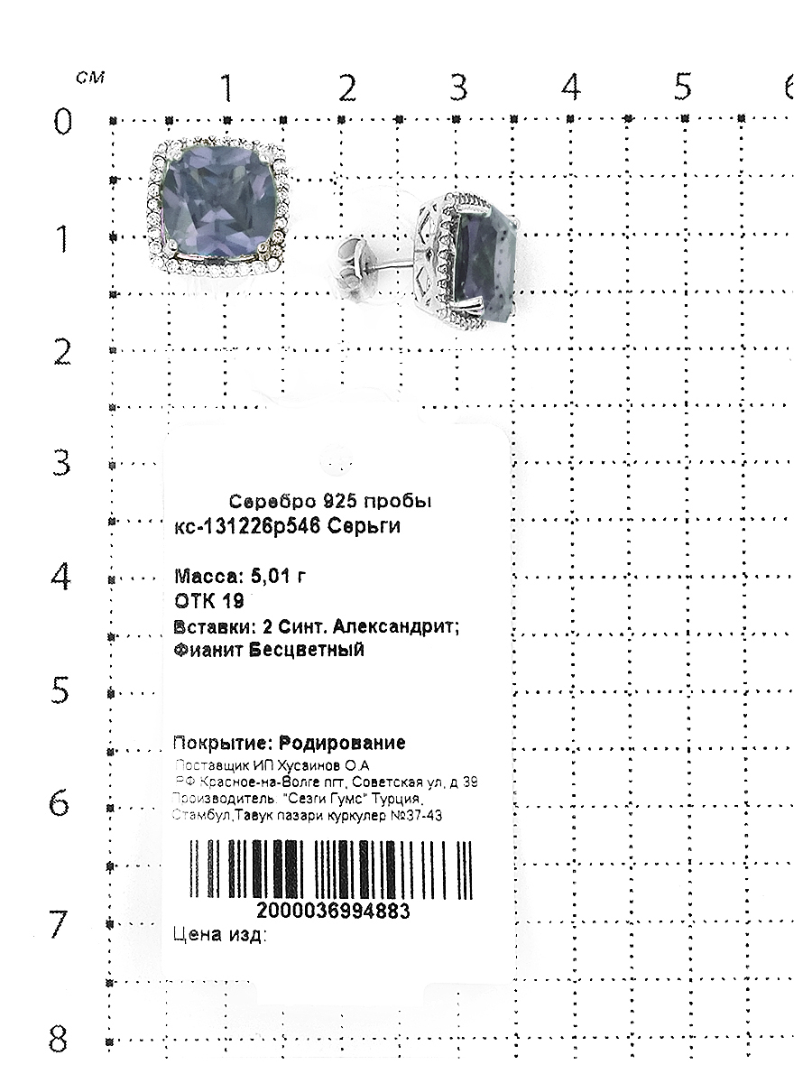 Серьги-пусеты из серебра с синт.александритом и фианитами родированные кс-131226р546