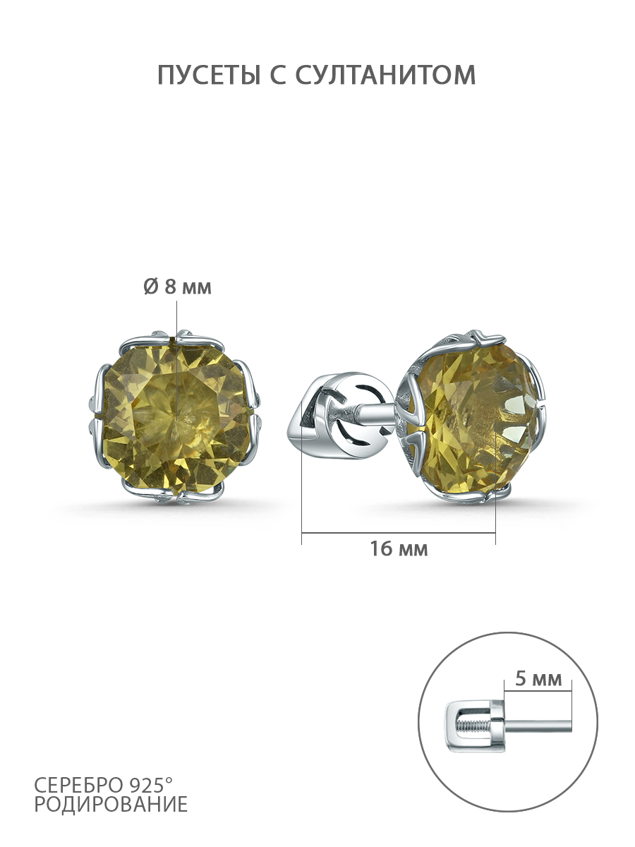 Серьги-пусеты из серебра с султанитом родированные 4-478р318