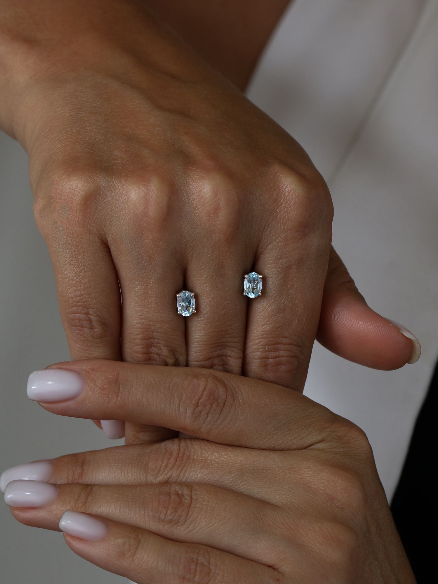 Серьги-пусеты из серебра с топазом родированные