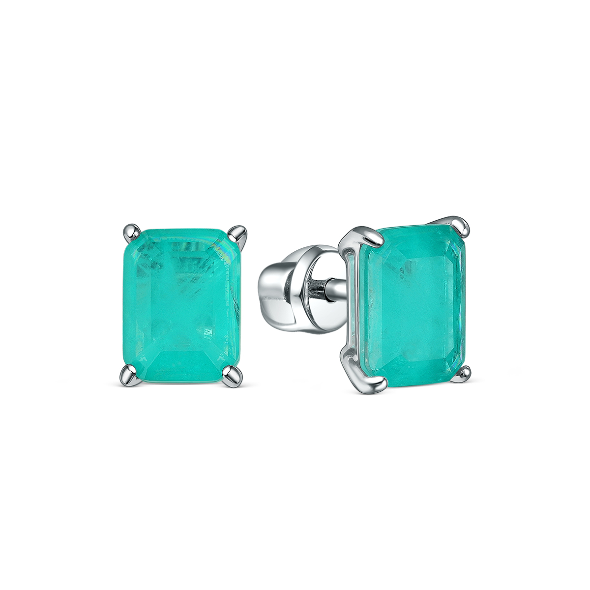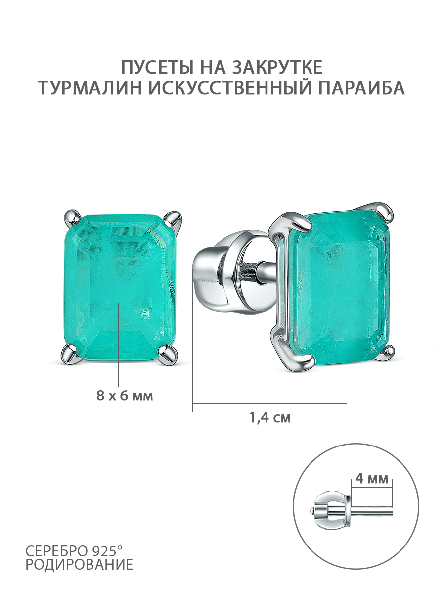 Серьги-пусеты из серебра с турмалином искусственным параиба родированные 2-035р4135