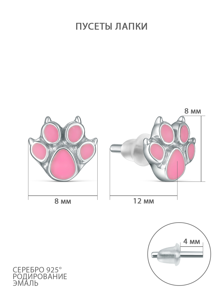 Серьги-пусеты из серебра с эмалью родированные - Лапки