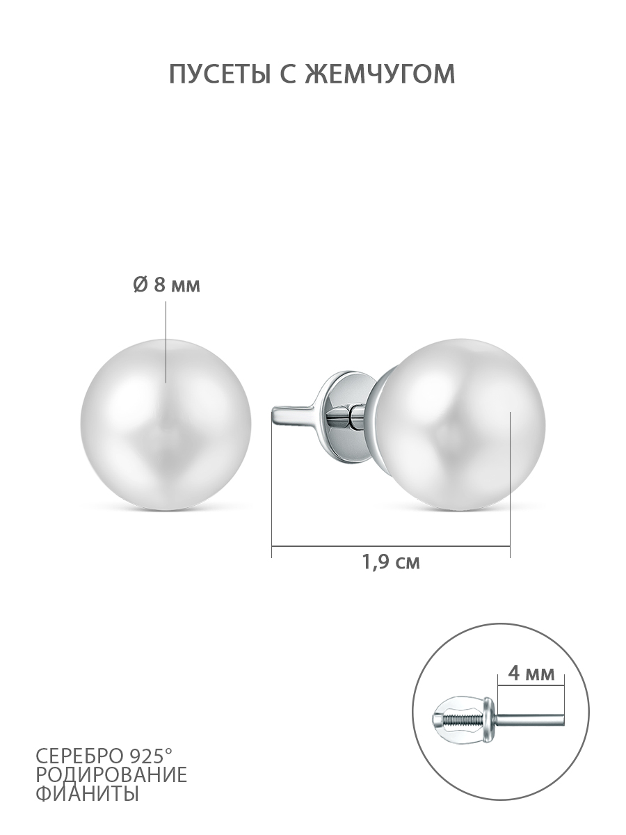 Серьги-пусеты из серебра с жемчугом родированные z2-9929