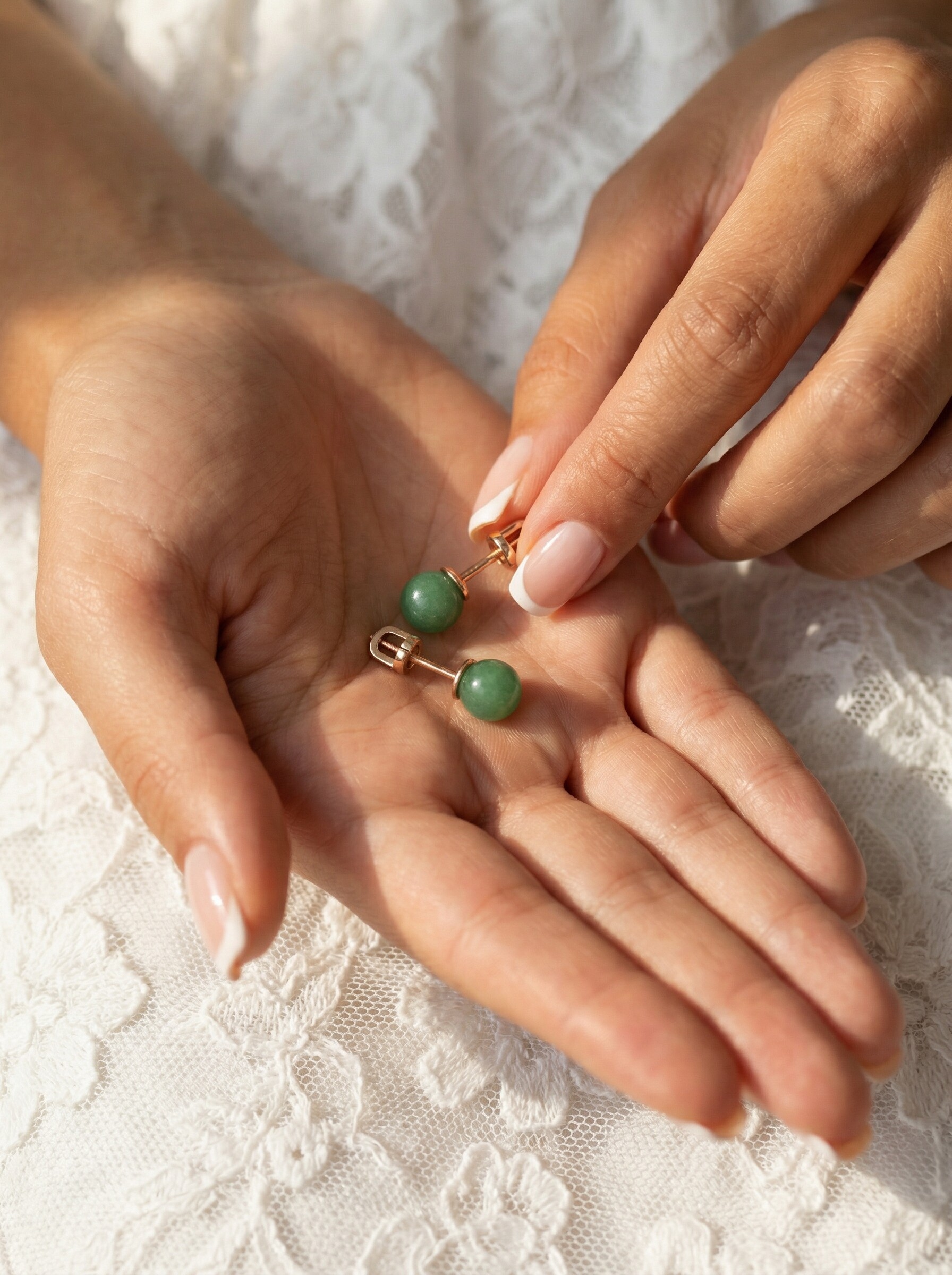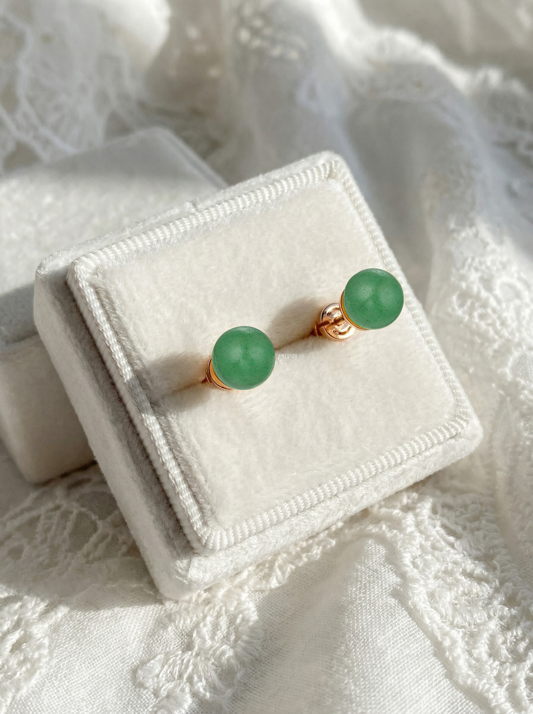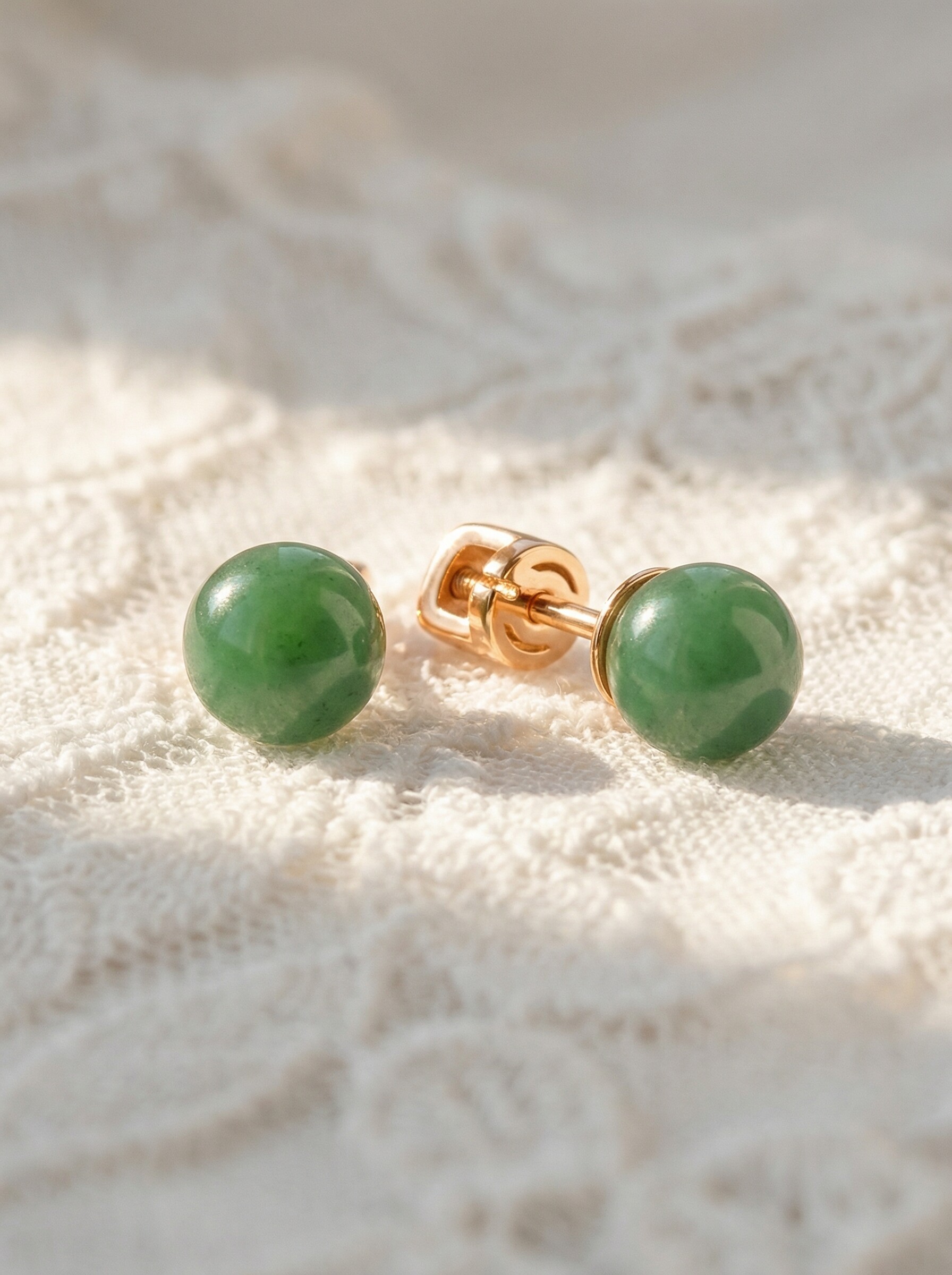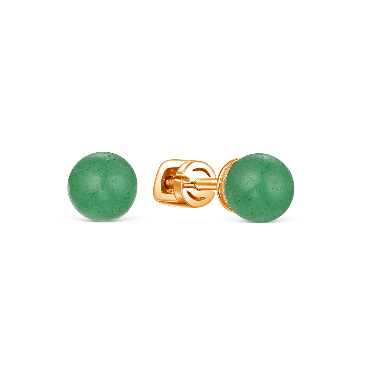 Серьги-пусеты из золочёного серебра с нефритом