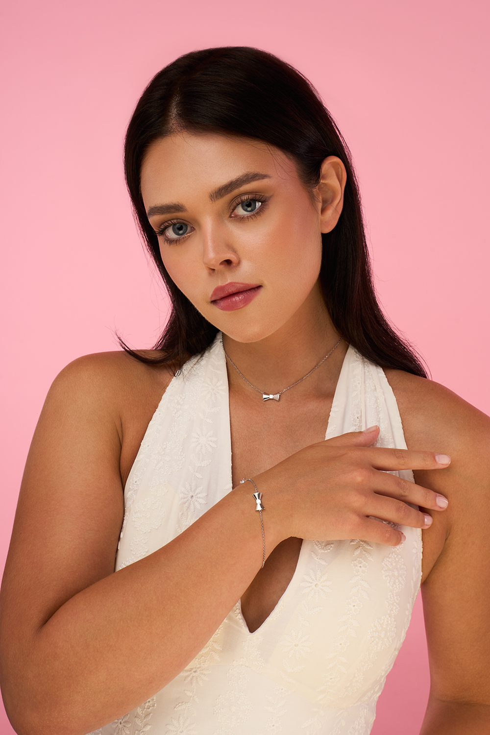 Украшения с бантами в серебре выглядят не жёсткими, а мягкими и пластичными, словно застывшими в движении.